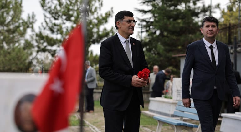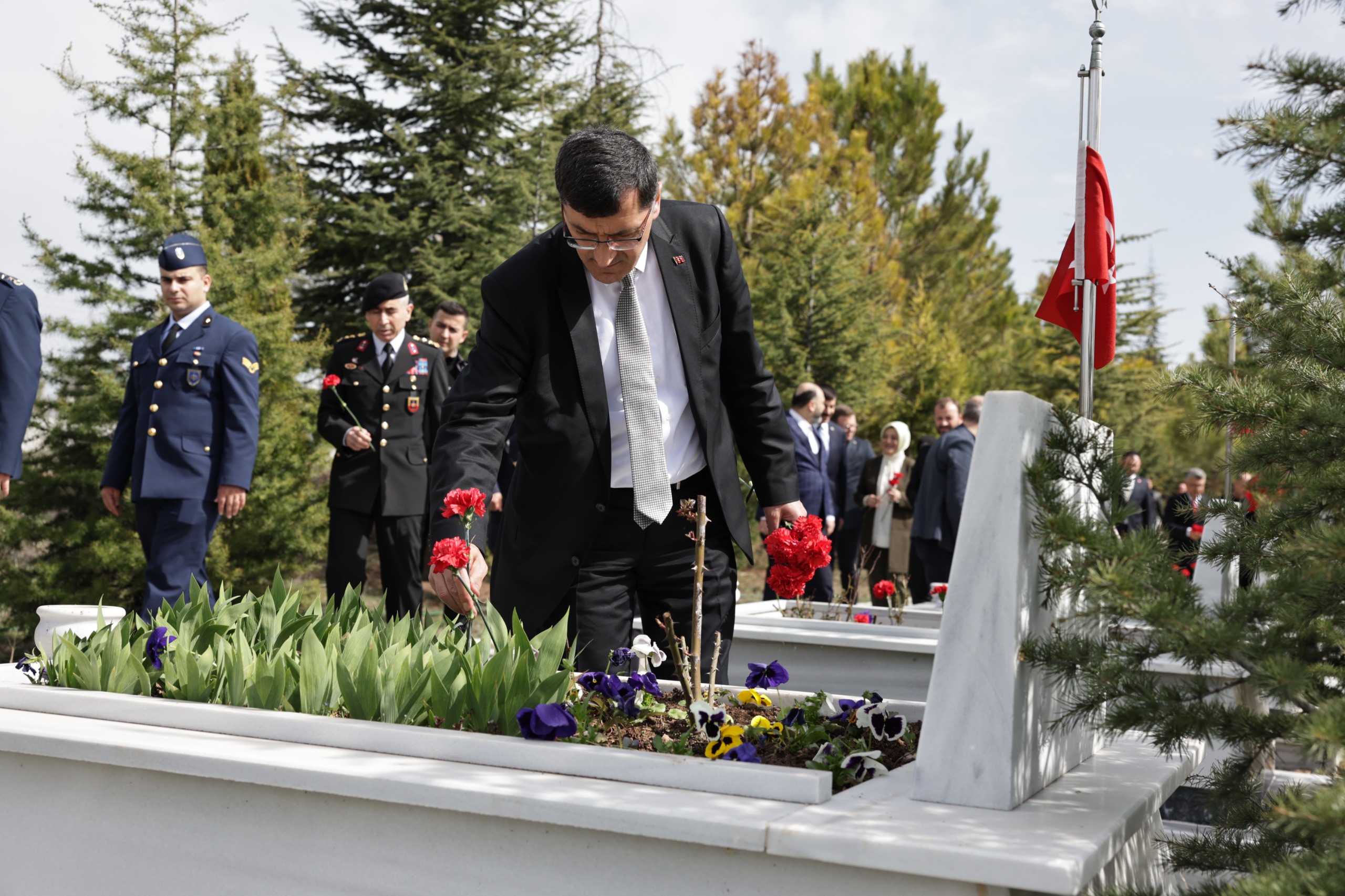 Ramazan Bayramı’na sayılı gün kala Kütahya Belediye Başkanımız Eyüp Kahveci, il protokolü ile birlikte Hava Şehitliği ve Polis Şehitliği’ni ziyaret ederek, vatan uğruna can veren kahramanlarımızı dualarla andı.Cuma namazının ardından gerçekleşen anma programı, Kur’an-ı Kerim tilavetiyle başladı. Belediye Başkanımız Eyüp Kahveci ve il protokolü, şehitlerimizin mezarlarına karanfiller bırakarak ailelerine başsağlığı ve sabır dileklerini iletti.