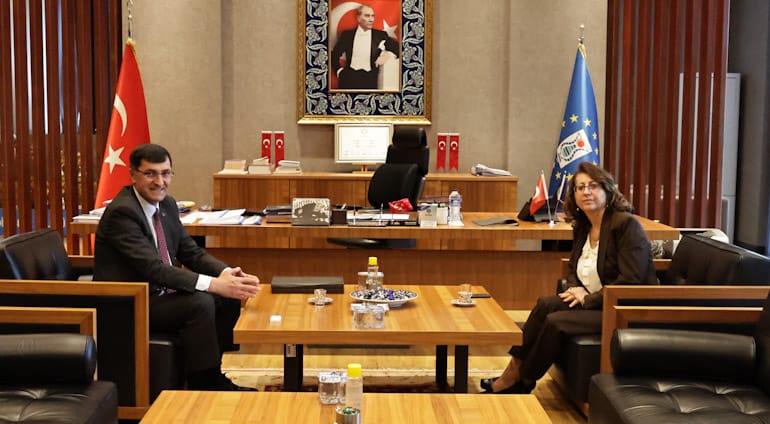 Ziyaretten duyduğu memnuniyeti dile getiren Belediye Başkanımız Eyüp Kahveci, nazik ziyaretleri ve değerli paylaşımları için İl Defterdarı Hatice İşcen Ercoşman’a teşekkür etti.