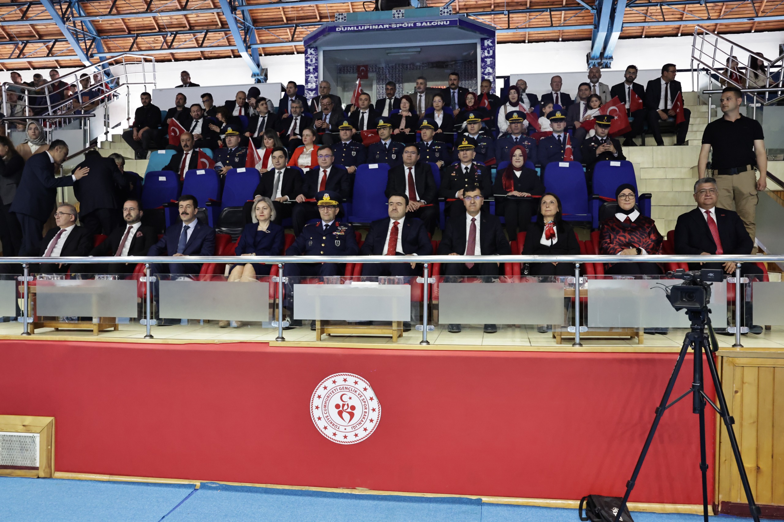 Kutlama programı, çelenk sunumunun ardından Dumlupınar Spor Salonu’nda devam etti. Saygı duruşu ve İstiklal Marşı'nın okunmasıyla başlayan törende, Kütahya Valisi Musa Işın ve İl Milli Eğitim Müdürü Mustafa Yılmaz günün anlam ve önemi ile ilgili konuşmalar yaptı.