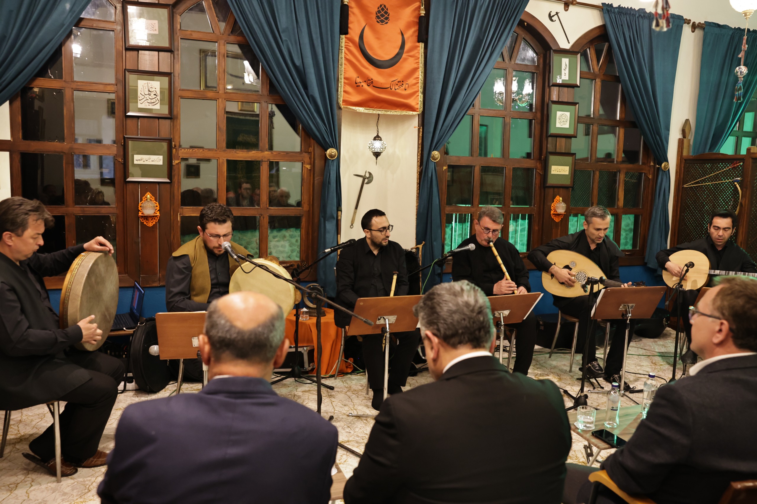 Tasavvuf musikisinin seçkin örneklerinin sunulduğu gecede; hanende Ahmet Faruk Ayaz’ın etkileyici sesiyle yankılanan nağmelere, ud’da Yasin Bol, tanburda Meriç Düzbaş ve neyde Yavuz Akalın ile Onur Üstünkaya eşlik etti.
