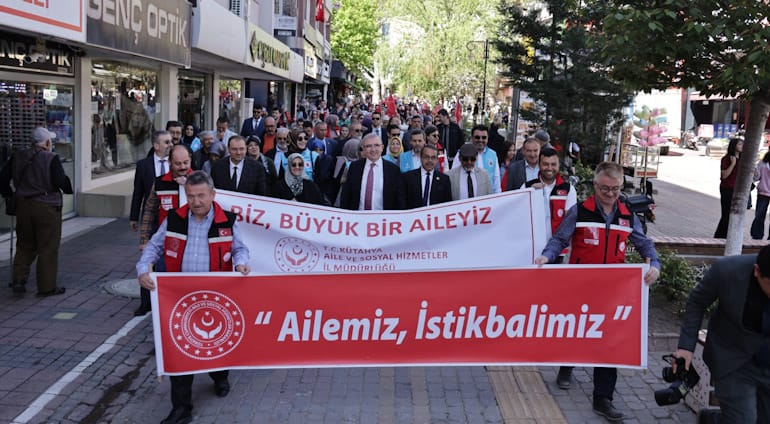 15 Mayıs Aile Günü kapsamında, Aile ve Sosyal Hizmetler Bakanlığı Aile ve Toplum Hizmetleri Genel Müdürlüğü öncülüğünde, Kütahya Valiliği Aile ve Sosyal Hizmetler İl Müdürlüğü koordinasyonunda düzenlenen kortej yürüyüşü vatandaşlarımızın katılımıyla gerçekleştirildi.