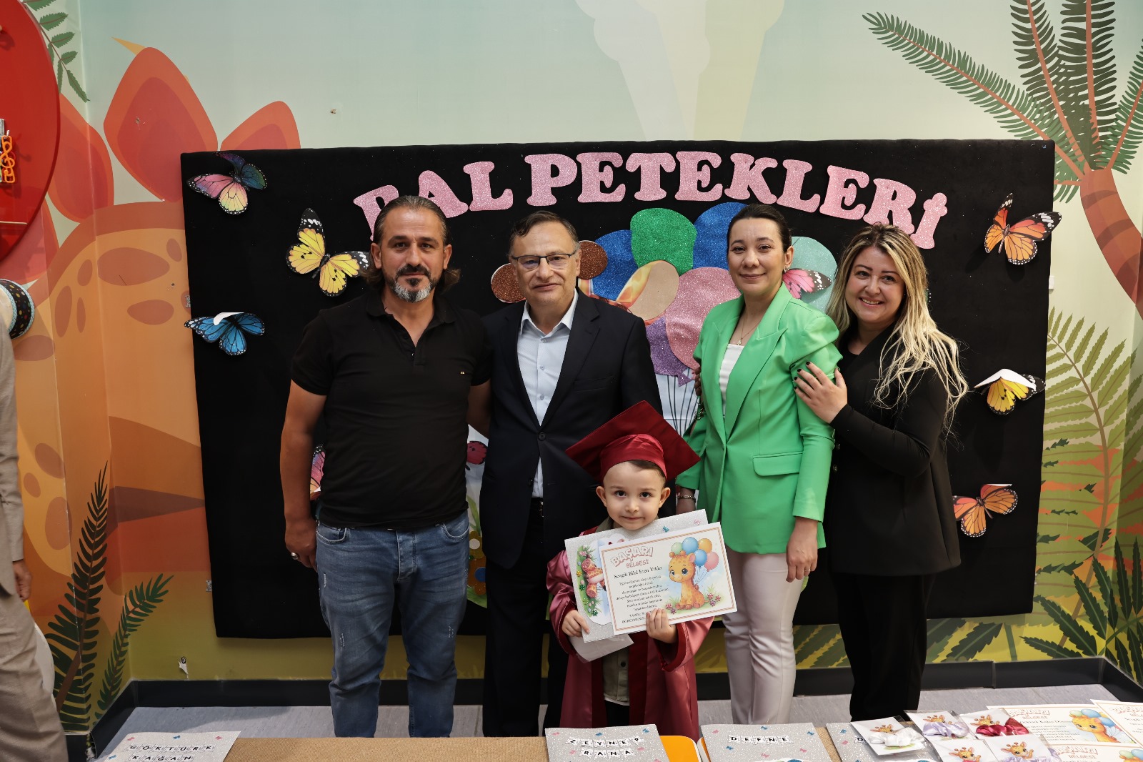 Kütahya Belediye Başkan Yardımcımız A. Hakan Öziltürk ve birim müdürlerimiz Kütahya Belediyesi Gündüz Çocuk Bakımevi’ndeki miniklerimizin karne heyecanına ortak oldu.Kütahya Belediyesi Gündüz Çocuk Bakımevimizin minik öğrencileri, karne heyecanını velileri, öğretmenleri, Belediye Başkan Yardımcımız Öziltürk ve birim müdürlerimiz ile birlikte yaşadı. Miniklerin mutluluklarını paylaşan Başkan Yardımcımız Öziltürk, öğrencilerimizle ayrı ayrı ilgilenerek öğretmenlerimize ve velilere emekleri için teşekkür etti.