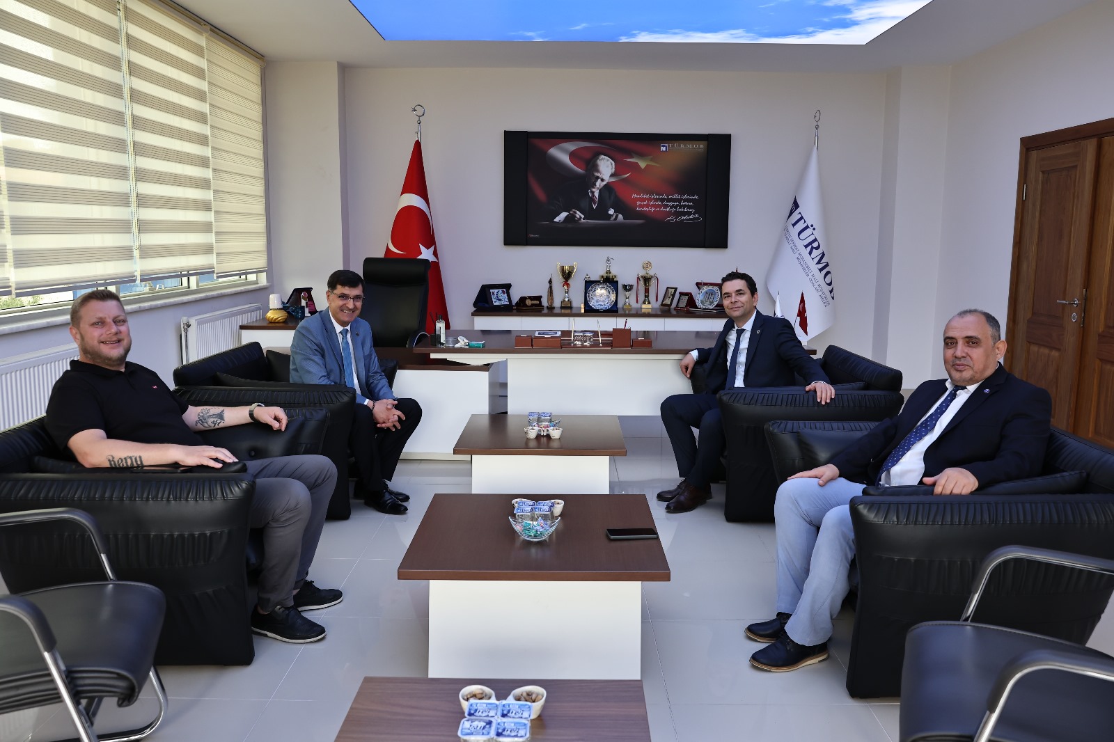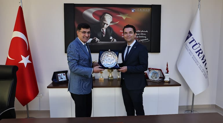 SMMMO Başkanı Mustafa Çetinel ve yönetimi ziyaretten duydukları memnuniyeti ifade ederek, Belediye Başkanımız Eyüp Kahveci’ye teşekkürlerini sundu.