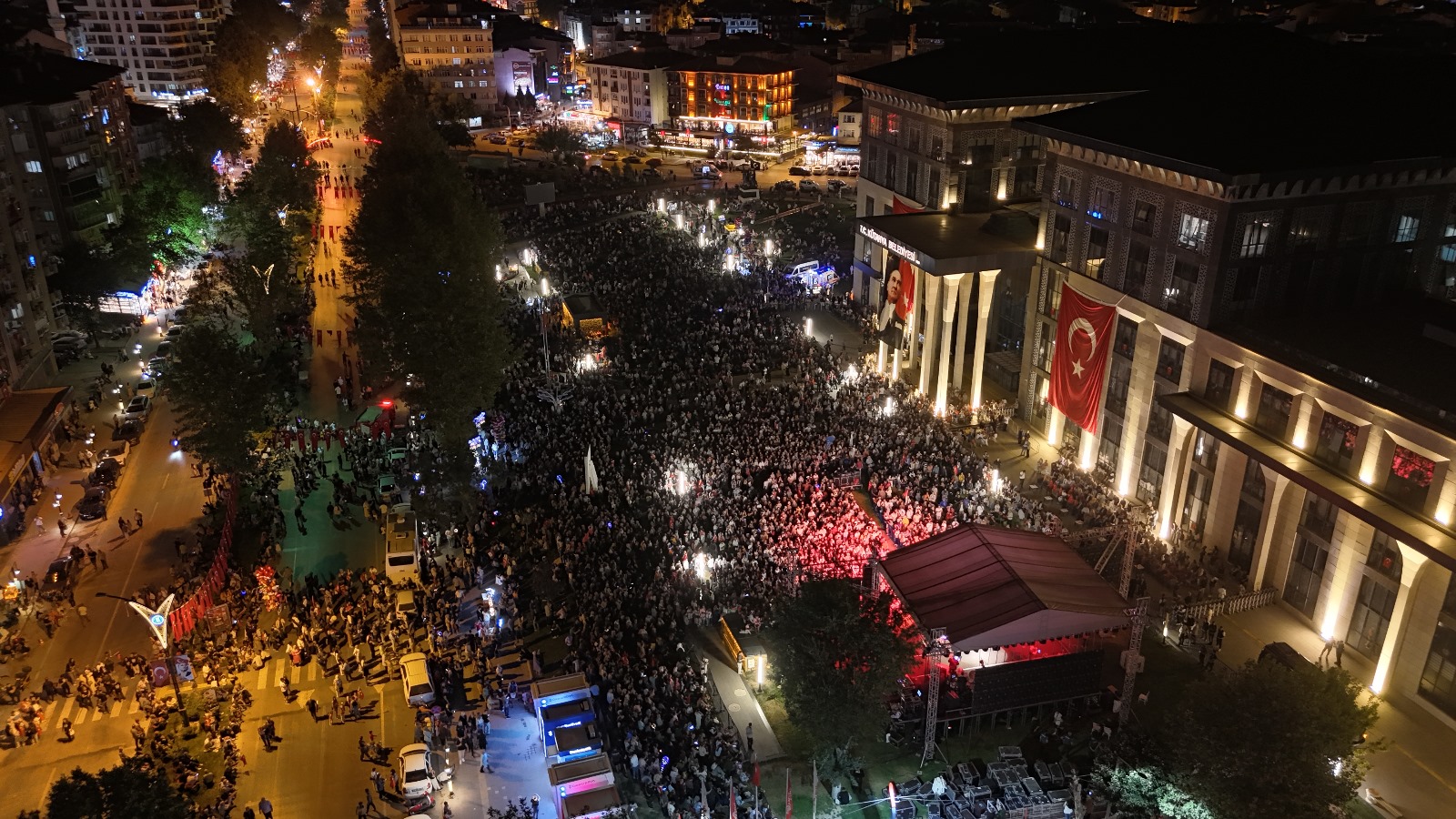 Etkinlikte sahneye çıkan Işın Karaca, en sevilen şarkılarıyla vatandaşlarımıza unutulmaz bir gece yaşattı. Belediye bahçemizi dolduran yüzlerce vatandaşımız, ellerinde bayraklarla hem şarkılara eşlik etti hem de zaferin gururunu doyasıya yaşadı.