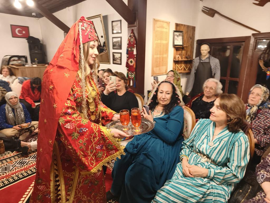 Kültürel paylaşımın ve sosyal dayanışmanın ön plana çıktığı etkinlikte, geleneksel gezek kültürü kadınlarımızın katılımıyla yaşatıldı. Etkinliğe gelenek ve görenekleri öğrenmek için katıldıklarını dile getiren kadınlarımız, gelin evine gelen misafirlerin ağırlanmasını canlandırarak, gelin evinde neler yapıldığını anlattı.