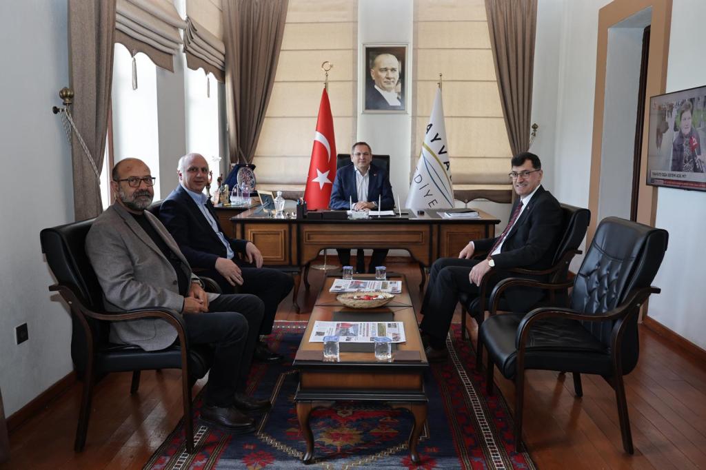 Kütahya Belediye Başkanımız Eyüp Kahveci, Balıkesir Ayvalık Belediye Başkanı Mesut Ergin’i makamında ziyaret etti.Ayvalıkgücü Belediyespor karşılaşması vesilesiyle gerçekleşen ziyarette; belediyeler arası iş birliği, yerel yönetimlerde iyi uygulama örnekleri ve vatandaş odaklı hizmet anlayışı üzerine görüş alışverişinde bulundu. Turizm, kültür-sanat faaliyetleri ve sosyal belediyecilik alanlarında yapılabilecek çalışmaların da ele alındığı görüşmede, deneyim paylaşımı ön plana çıktı.