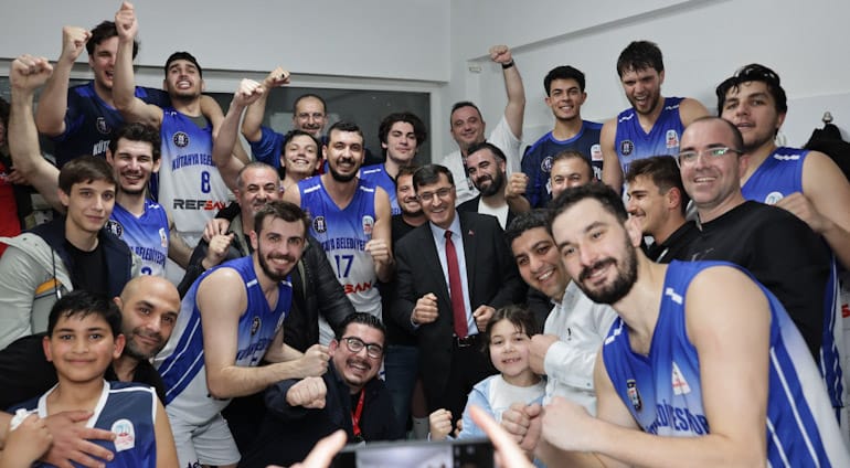 Türkiye Basketbol Federasyonu (TBF) 2. Lig’de mücadele eden Kütahya Belediyespor’umuz, play-off karşılaşmasında Karatay Belediyespor’u 81-66 skorla mağlup ederek önemli bir başarıya imza attı ve adını çeyrek finale yazdırdı.Büyük bir heyecana sahne olan mücadelede takımımız, sahadaki azmi ve başarısıyla galibiyete uzanırken; Kütahya Belediye Başkanımız Eyüp Kahveci de karşılaşmayı tribünden takip ederek takımımıza destek verdi. Maç boyunca tribünlerde yerini alan Belediye Başkanımız Eyüp Kahveci, sporcularımızın mücadelesine ortak oldu ve taraftarlarımızla birlikte galibiyet coşkusunu yaşadı.