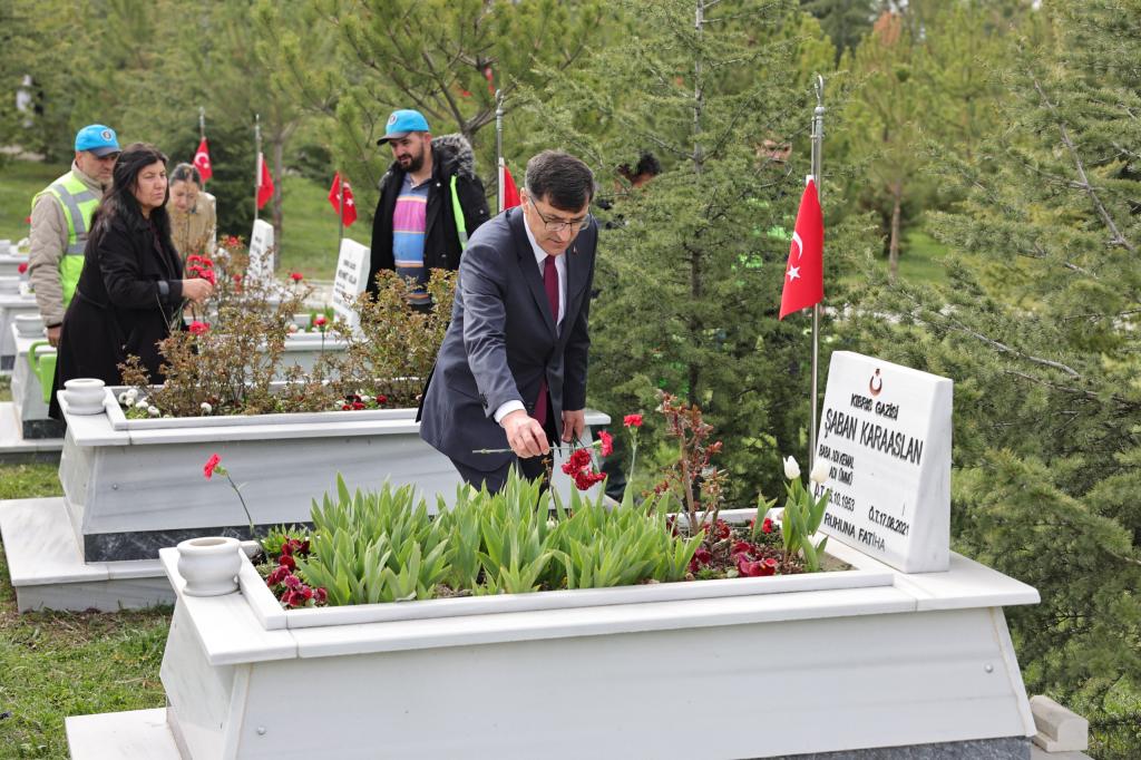 Kütahya Belediye Başkanımız Eyüp Kahveci, Emniyet Teşkilatımızın 181. kuruluş yıl dönümü vesilesiyle Kütahya İl Emniyet Müdürlüğü koordinasyonunda düzenlenen program kapsamında Polis Şehitliği ve Hava Şehitliği’ni ziyaret etti.Gerçekleştirilen ziyarette, vatanımızın huzur ve güvenliği uğruna canlarını feda eden aziz şehitlerimiz dualarla anıldı, kabirlerine karanfiller bırakıldı. Program boyunca şehitlerimizin emaneti olan topraklarımızın ne denli kıymetli olduğu bir kez daha hatırlandı.