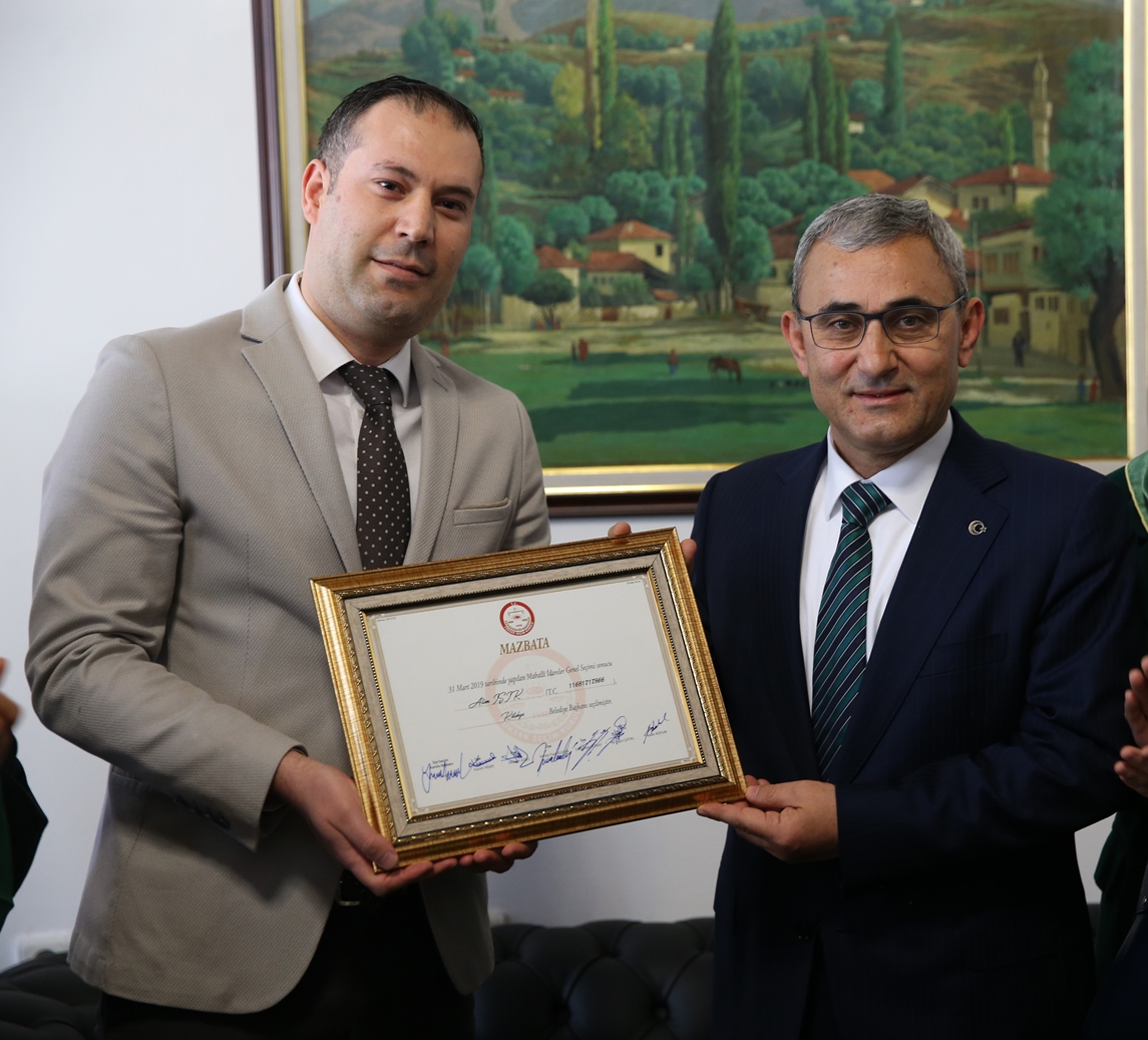 Törende Kütahya Merkez İlçe Seçim Kurulu Başkanı Yusuf Hatip, Kütahya Belediye Başkanı seçilen Prof. Dr. Alim Işık ile Belediye Meclis Üyeleri ve İl Genel Meclisi Üyelerine görevlerinde başarılar diledi.