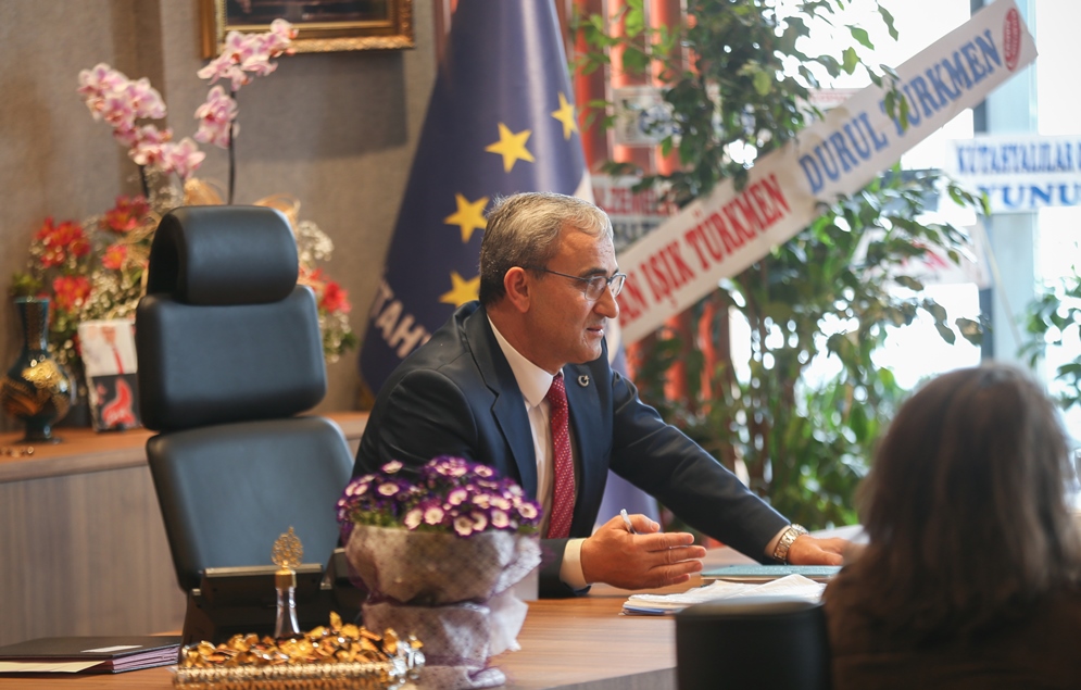 Kütahya Belediye Başkanı Prof. Dr. Alim Işık, hemşehrilerini makamında ağırlayıp, istek ve taleplerini dinliyor.Kütahya Belediye Başkanı Prof. Dr. Alim Işık, başkanlık makamında vatandaşlarımızın tebriklerini kabul ediyor, ziyarete gelenlerin taleplerini dinleyip sohbet ediyor.