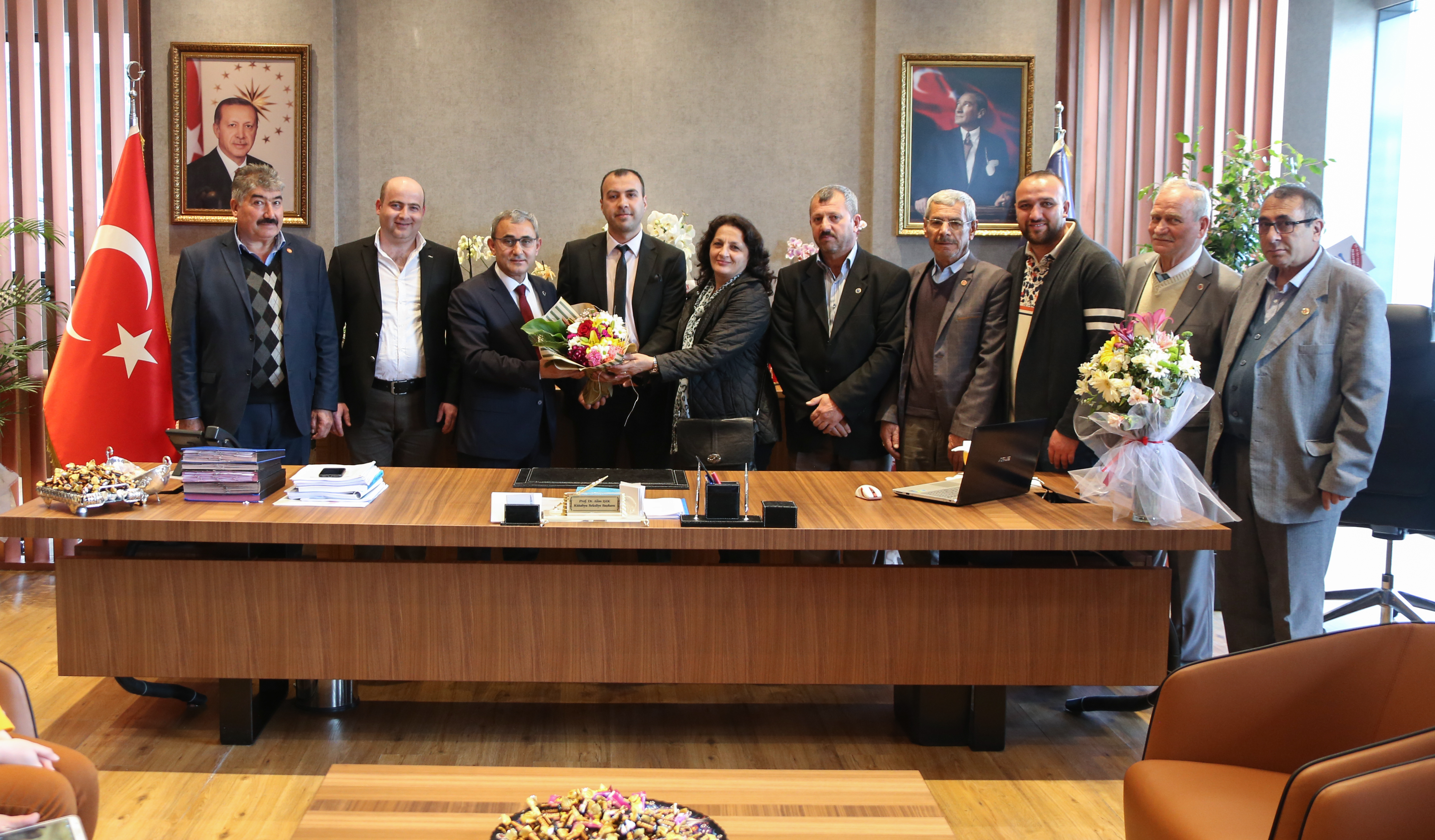 Kütahya Belediye Başkanı Prof. Dr. Alim IŞIK'a, tebrik ziyaretleri devam ediyor.Belediye Başkanı Prof. Dr. Alim IŞIK, tebrik ziyaretleri kapsamında Kamu Kurum ve Kuruluşları, Sivil Toplum Kuruluş Temsilcileri ile hemşehrilerinin tebriklerini kabul ediyor. Konuklarını makamında ağırlayan Kütahya Belediye Başkanı Prof. Dr. Alim IŞIK, misafirlerinin tebriklerini kabul ediyor, taleplerini dinleyip onlarla sohbet ediyor.