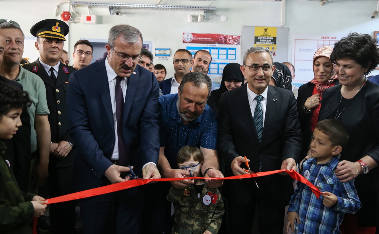 Kütahya Valisi Dr. Ömer TORAMAN, Kütahya Belediye Başkanı Prof. Dr. Alim IŞIK ile protokol üyelerinin Şehit Uzman Çavuş Hasan Kahraman Kütüphane açılış kurdelesini kesmesinin ardından Kütüphaneyi gezip incelemelerde bulundular.