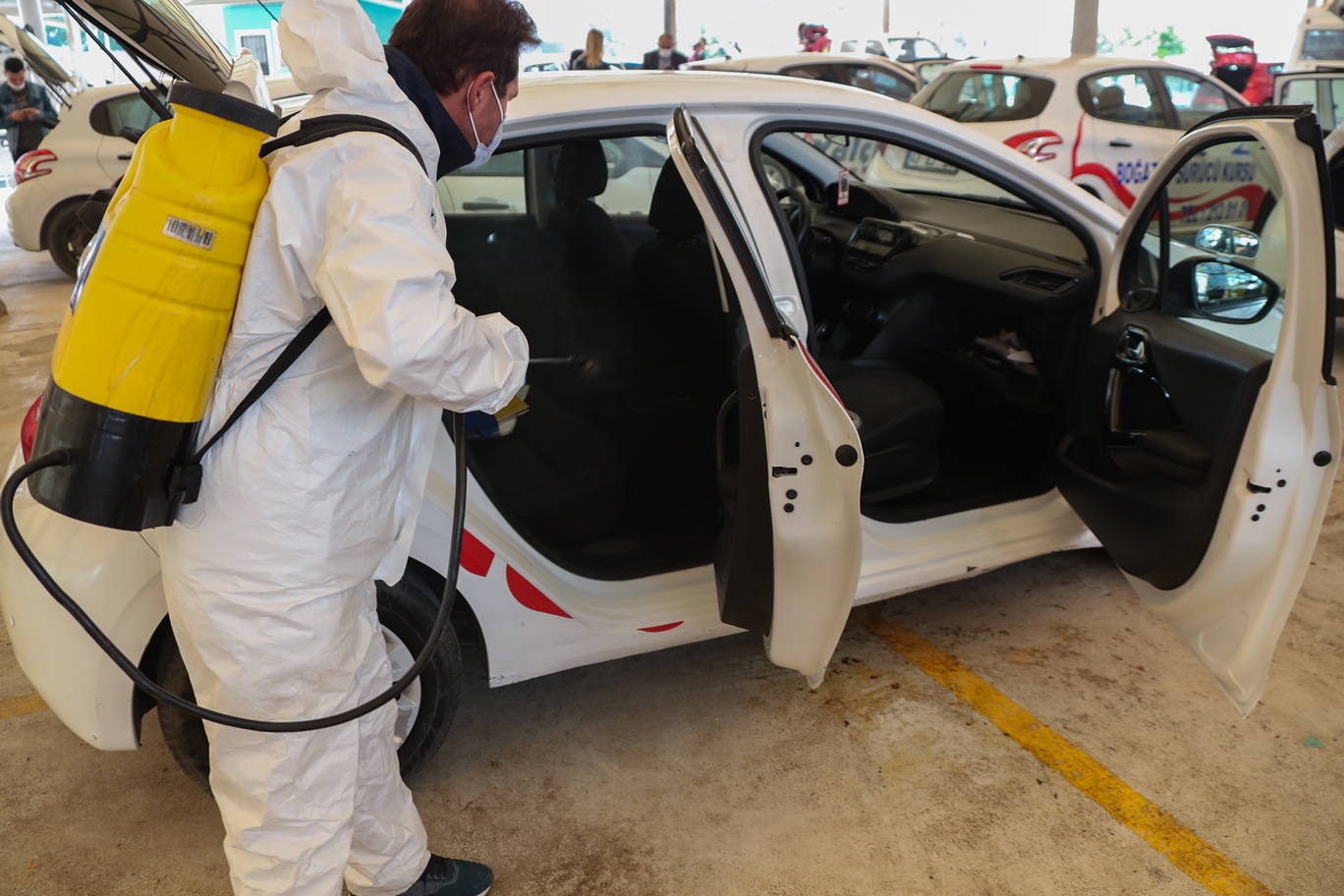 Kütahya Belediyesi Veteriner İşleri Müdürlüğü ekipleri, ehliyet sahibi olmak isteyen vatandaşlarımıza eğitim vererek sınavlara hazırlayan özel sürücü kurslarının araçlarını talepleri doğrultusunda dezenfekte etti.