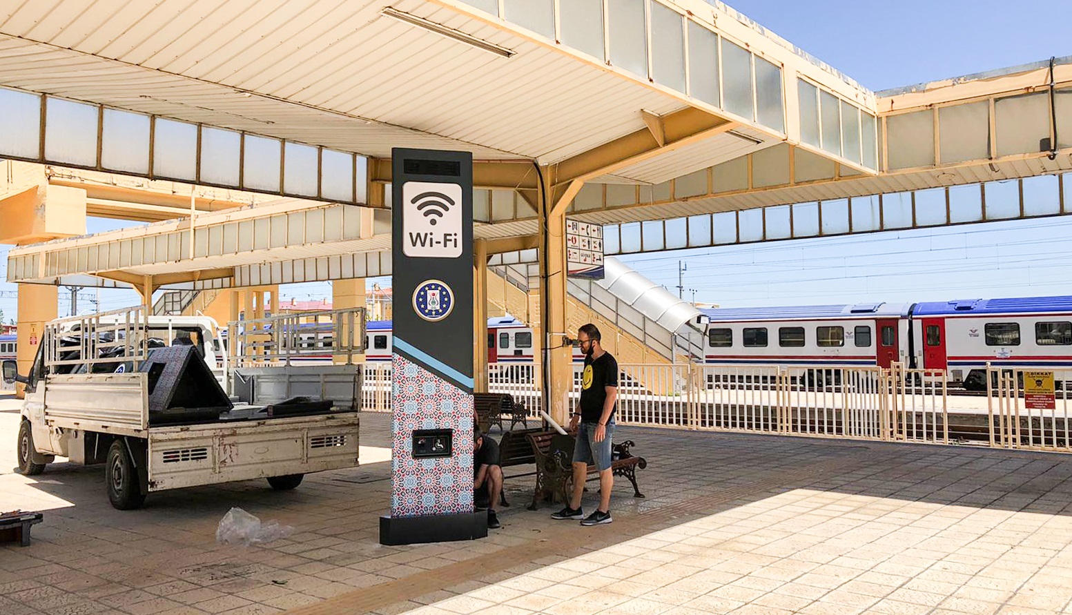 Akıllı Kent Kütahya projesi çerçevesinde çalışmalarını yürüten ekipler, Şehirlerarası Otobüs Terminali ve Tren Garına ise ücretsiz wi-fi noktalarını yerleştiriyor. Şehir yapısına uygun çini motifleri kullanılarak kurulan, wi-fi noktalarında cep telefonu şarj istasyonu ve engelli şarj ünitesi ile engelli hemşehrilerimizin de akülü araçlarını 7 gün 24 saat şarj ederek yollarına devam edebilmeleri sağlanacaktır.
