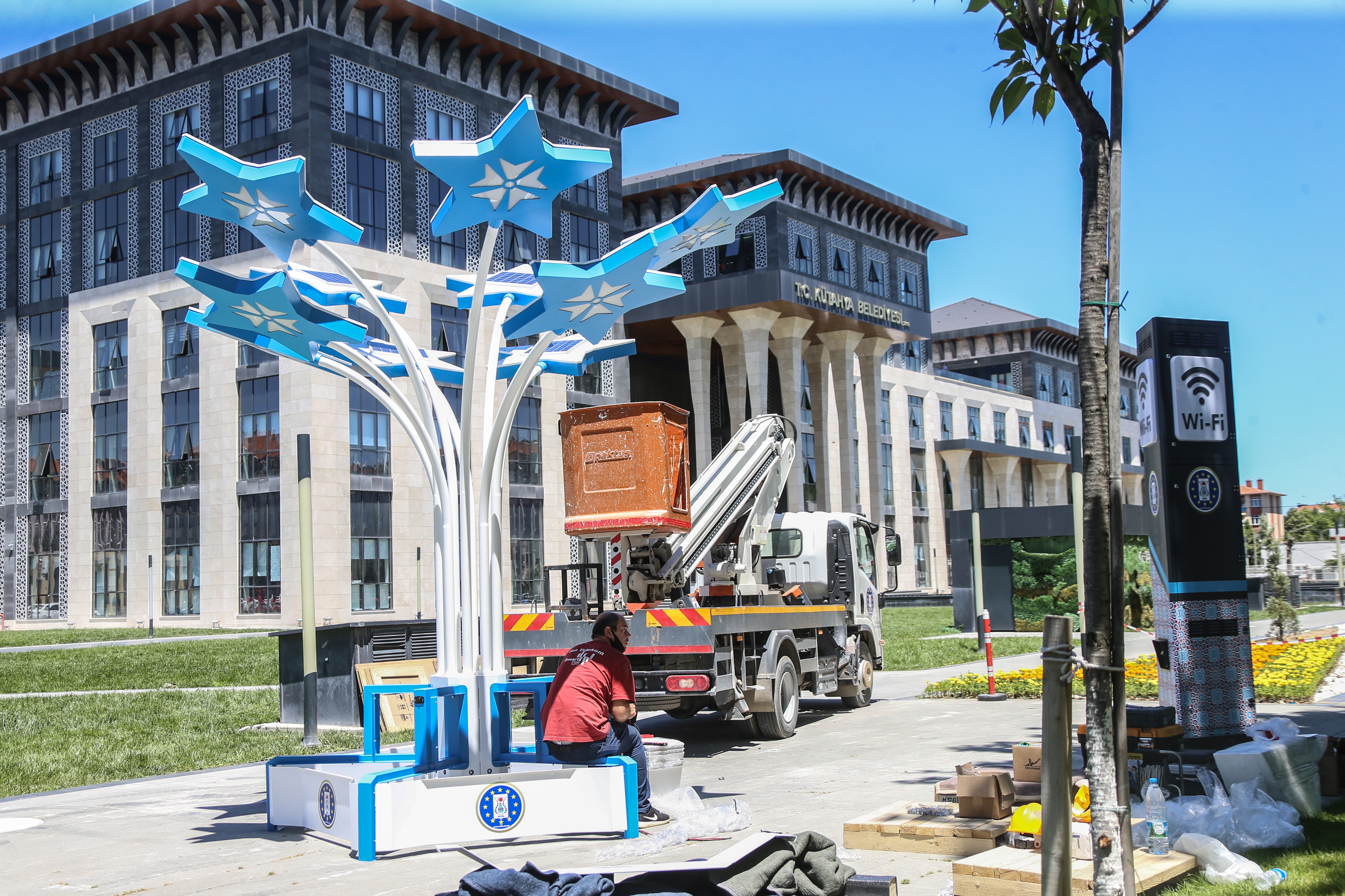 Belediye Başkanı Prof. Dr. Alim IŞIK’ın, İmar, Çevre ve Şehircilik projeleri arasında yer alan Akıllı Kent Kütahya projesi şehrimize uygulanıyor.Akıllı Kent Kütahya projesini hayata geçirmeye devam eden Kütahya Belediyesi Bilgi İşlem Müdürlüğü ekipleri, bu kapsamda Belediye hizmet binası önüne ücretsiz wifi noktaları ve üzerinde mobil cihaz şarj noktası olan, panelli mobilyalar kuruyor.
