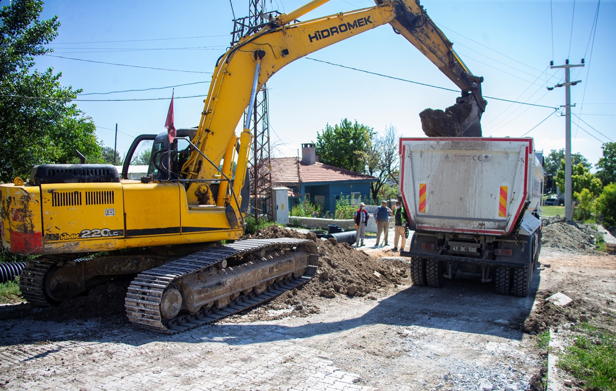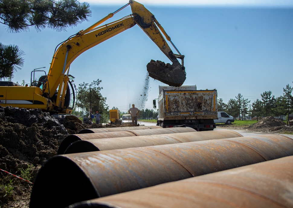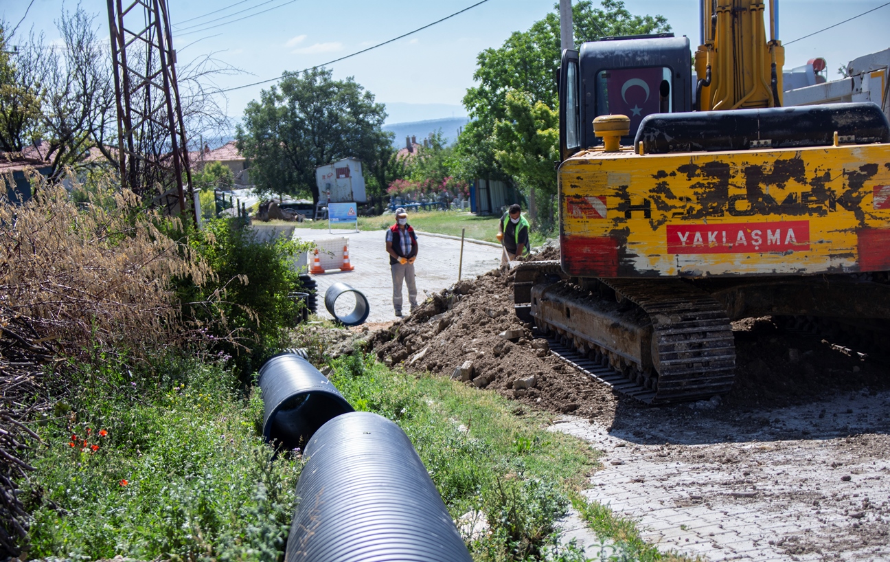 Ekipler, ayrıca Hacıazizler Mahallesi’nde dağdan gelen suyun yerleşim yerlerini basmaması için 300 m uzunluğunda 600’lük yağmur suyu hattı döşeme çalışması yapıyor.