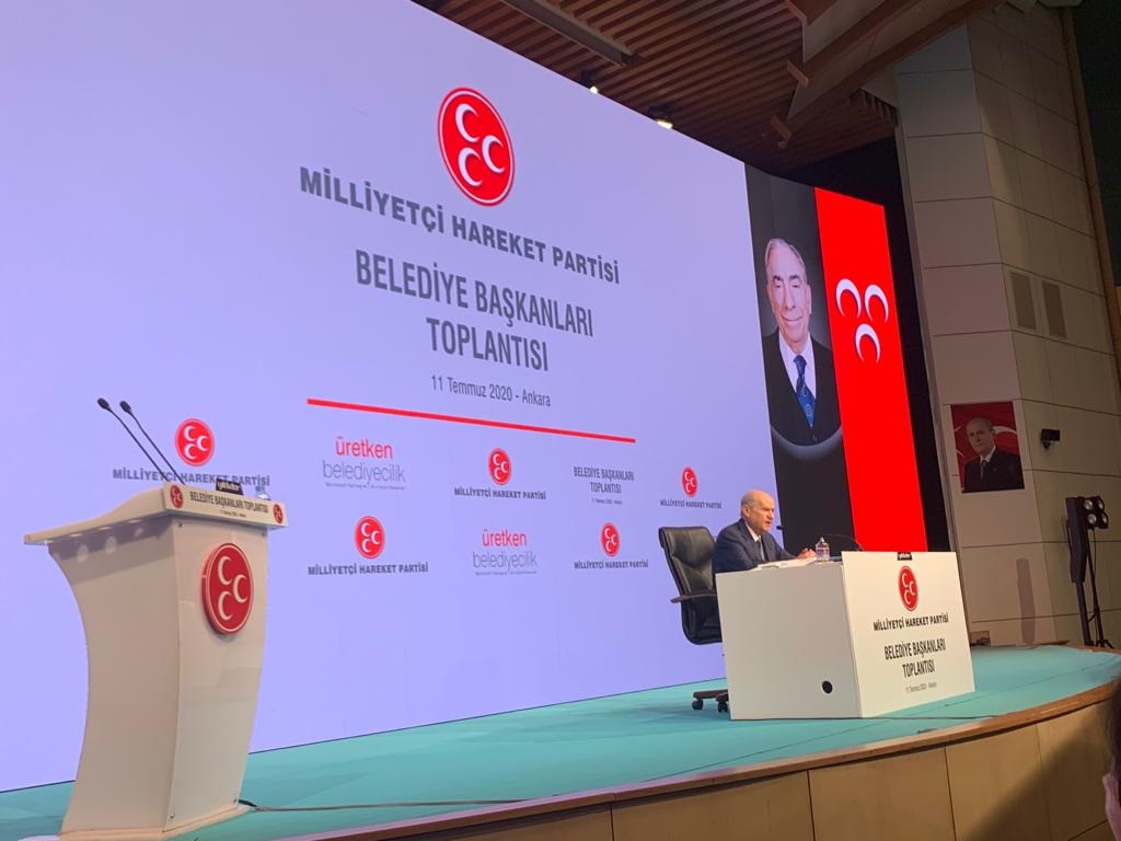 Milliyetçi Hareket Partisi Genel Merkezinde yapılan toplantıya 235 il ve ilçe Belediye Başkanı katıldı.