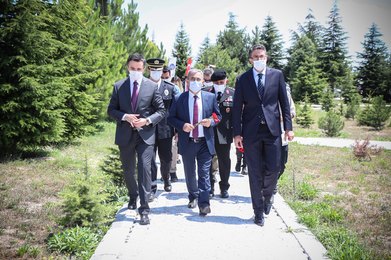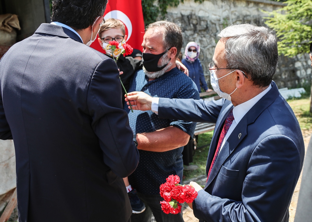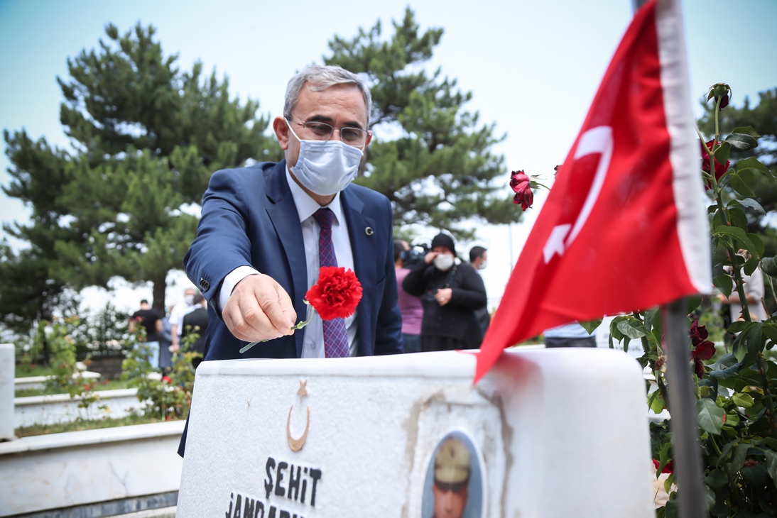 İl Müftülüğü görevlilerinin Kuran-ı Kerim tilaveti okunmasının ardından ülkemizin birliği ve dirliği için dua edildi, kabirlere karanfil bırakıldı.