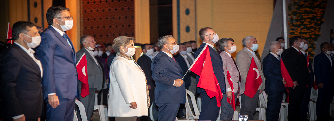 Programda Cumhurbaşkanı Recep Tayyip ERDOĞAN’ın anma töreninde yaptığı konuşması led ekrana yansıtıldı. Gecede şiirler ve ilahiler okundu, kahramanlık türküleri seslendirildi.