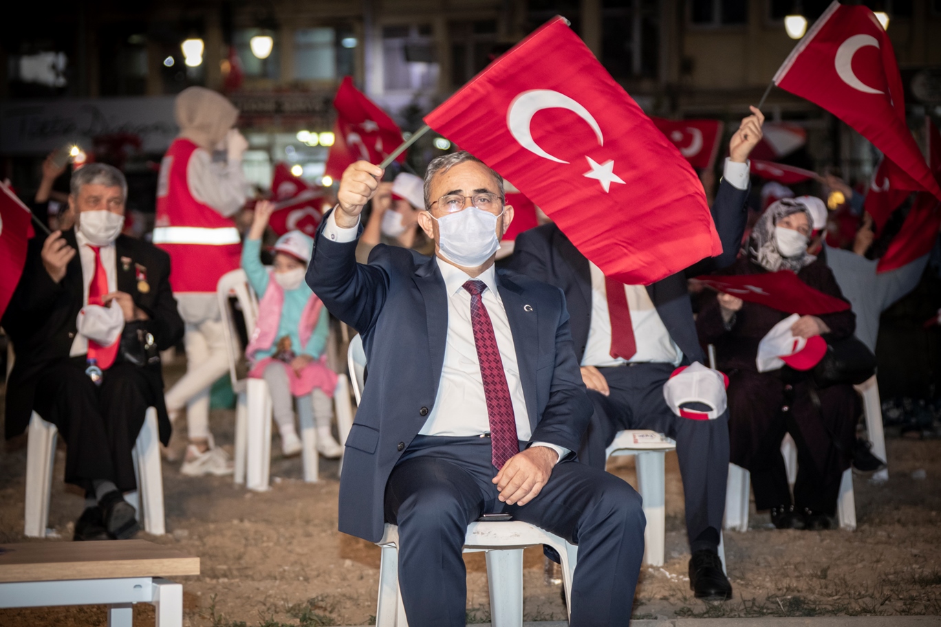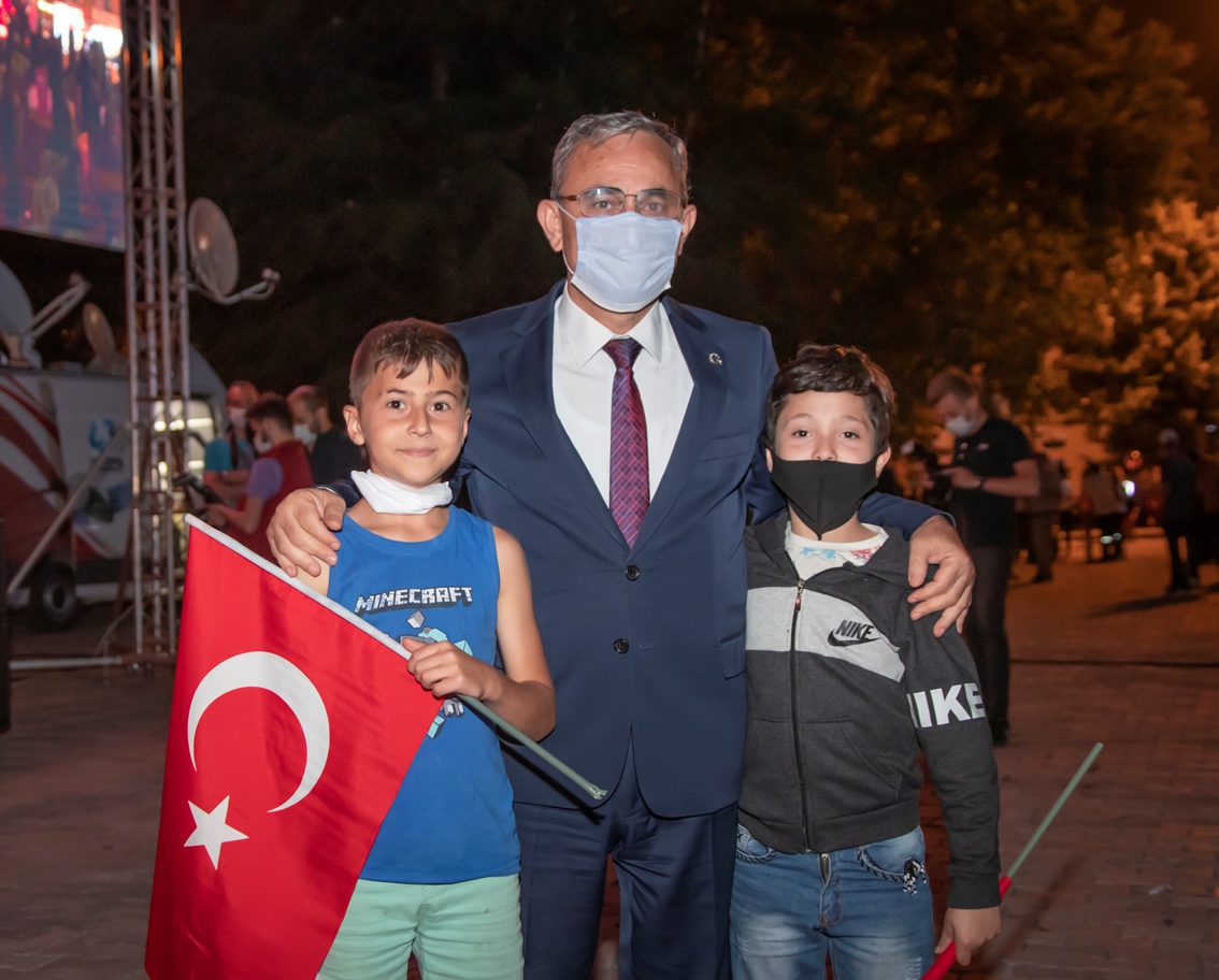 Milletimiz Cumhurbaşkanı’nı kendisi seçerek sandıktan çıkarmayı kabul etmiş, ardından Cumhurbaşkanlığı Hükümet Sistemi ile daha güçlü özellikle içerden kendisinden görünen hainlere karşı bir daha asla böyle bir olayı yaşatmamak üzere güçlü bir iradeyi ortaya koymuştur. Kütahya’mızda Valiliğimizin organizasyonuyla düzenlenen bu geceye katılım sağladığınız için hepinize teşekkürlerimi sunuyorum. Rabbim birliğimizi ve beraberliğimizi bozmasın daha da güçlendirsin, dedi.