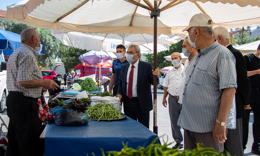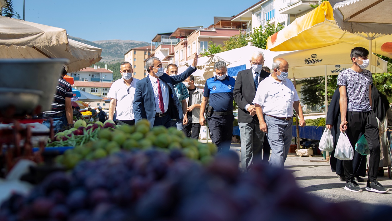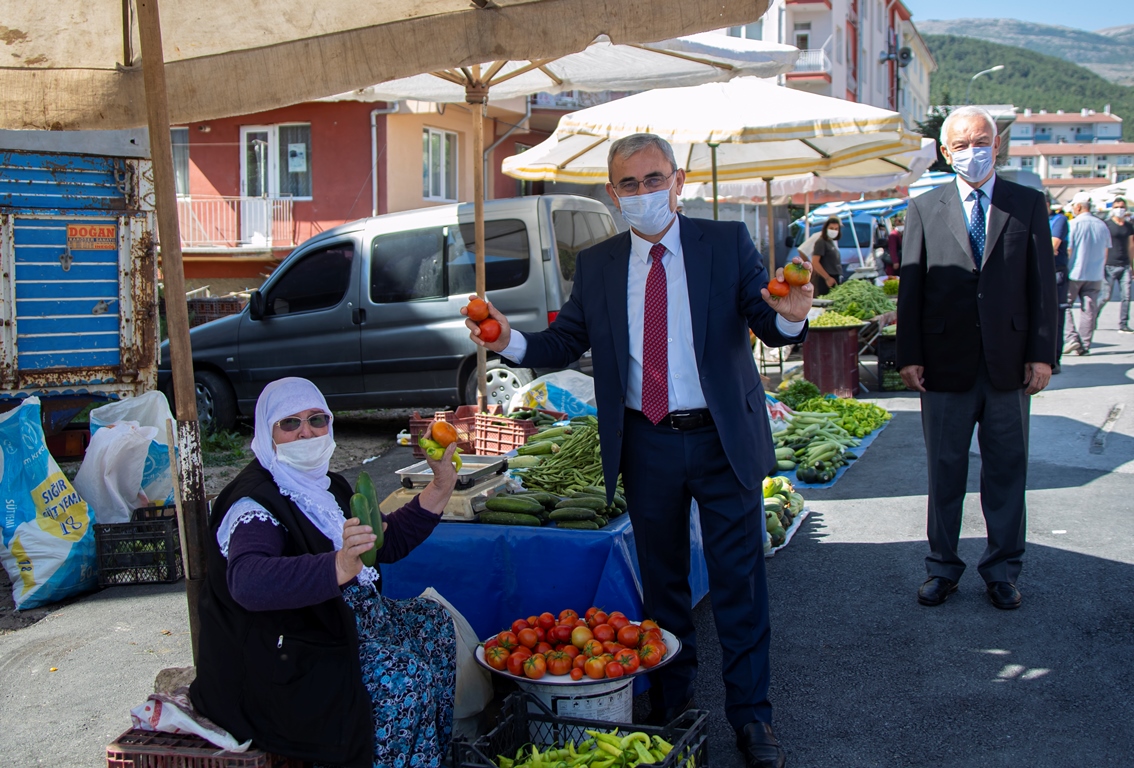 Başkan IŞIK, incelemeler esnasında pazarcı esnafını ve pazarda alışveriş yapan vatandaşlarımızı Covıd-19 hastalığına karşı maske takmaları, sosyal mesafeyi korumaları ve hijyen kurallarına uymaları konusunda uyardı.