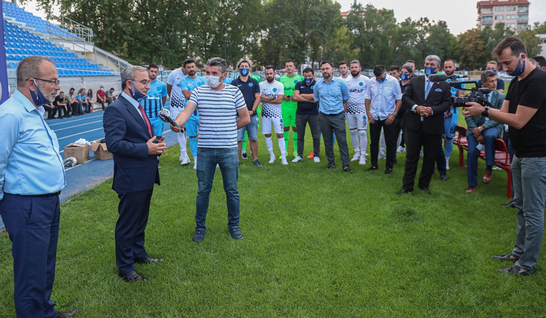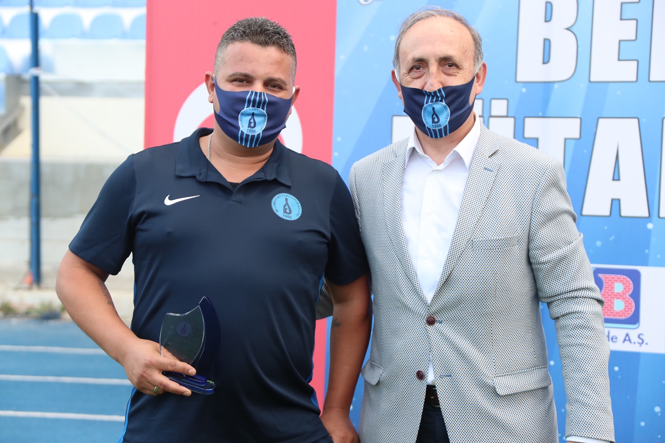 Ama 26 haftalık bir maraton maalesef ülkemizin içinde bulunduğu pandemi süreci nedeniyle 22. hafta sonunda kesildi. Bu 22. haftanın 16 haftasını lider götüren bu güzel takımın değerli oyuncuları başta olmak üzere hem deplasmanda hem iç sahada yalnız bırakmayan çok değerli taraftarlarımız, kulübümüzün yöneticileri, Belediyemizin ilgili Başkan Yardımcıları ve şahsım bugünü bekliyorduk. Bugün 22. Haftada oyunların durdurulduğu ama 4 haftalık süreçte teorik olarak 12 puan daha kazanma hakkı olan bir maç yani 3 puan aralığındaki takımların liderin arkasından Türkiye Futbol Federasyonunun kararı ile bir üst lige yani 3. Lige yükseltilmesi nedeniyle Belediye Kütahyasporumuz bugün bu anı yaşıyor. Biz bunun bir sevda olduğunu biliyorduk. O günkü kongrede bir söz vermiştim. ‘Bu takım şampiyon olacak eğer şampiyon olmazsa bu kürsüde bir daha konuşmam’ demiştim. 3 Yıl sonra inşallah tekrar bir kongre yapıldığında hedefimiz 5 yıl içerisinde Belediye Kütahyasporun 1. Ligde oynamasını sağlamak. Şuanda bunun birinci adımı olan 3. Lige çıkma gerçekleşti. Ama önümüzde iki şampiyonluk daha var. Herkes gücünü yeşil sahada ortaya koyar ve şampiyonluk yarışında yarışırsa bu seneki hedefimizde 3. Ligde şampiyonluk. Allah nasip ederse buna göre bir takım kuracağız ve bu takımı Kütahya’nın yani şehrimizin takımı haline getireceğiz. Hedefi doğru koyarsak bu hedefe ulaşmak için herkes aynı noktaya bakar ve şehrimizin takımını hak ettiği yere taşımak için çalışırsak bizim başaramayacağımız bir şey yok. Sıfırdan kurulan bir takımla bir yılda bu noktaya geldiysek bundan sonraki yıllarda da inanıyorum ki 1. Lig hedefimizi tutturabiliriz, dedi.