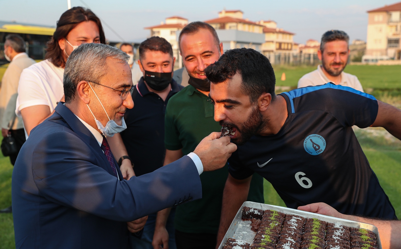 Kütahya Belediye Başkanı Prof. Dr. Alim IŞIK, 3. Ligde mücadele edecek olan Belediye Kütahyaspor’un idmanını ziyaret etti.3.Lig şampiyonluğu hedefi ile 2020-2021 sezonu idmanlarına başlayan Belediye Kütahyaspor’un futbolcularını Halil Akkaş Sahasında gerçekleşen idmanda ziyaret edip baklava ikramında bulunan Belediye Başkanı Prof. Dr. Alim IŞIK, Belediye Kütahyaspor Kulüp Başkanı Cahit ÖZEL ile yönetim kurulu üyeleri, teknik heyet ve oyunculara çalışmalarında başarılar diledi.