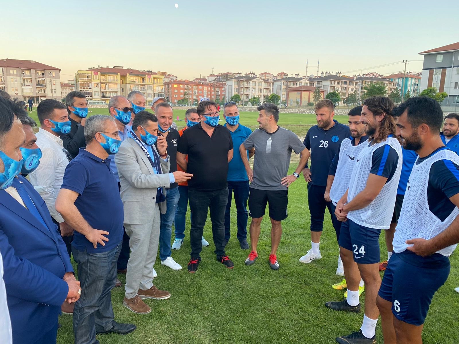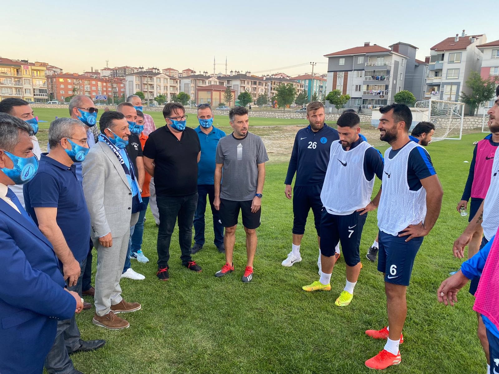Belediye Başkanı Prof. Dr. Alim IŞIK ile Milliyetçi Hareket Partisi (MHP) Kütahya Milletvekili Ahmet ERBAŞ, Belediye Kütahyaspor’u idmanda yalnız bırakmadı.3. Ligde mücadele edecek olan Belediye Kütahyaspor takımını Halil Akkaş Sahasında gerçekleşen idmanda ziyaret eden Belediye Başkanı Prof. Dr. Alim IŞIK ile MHP Kütahya Milletvekili Ahmet ERBAŞ, ziyarette oyunculara baklava ikramında bulundu.