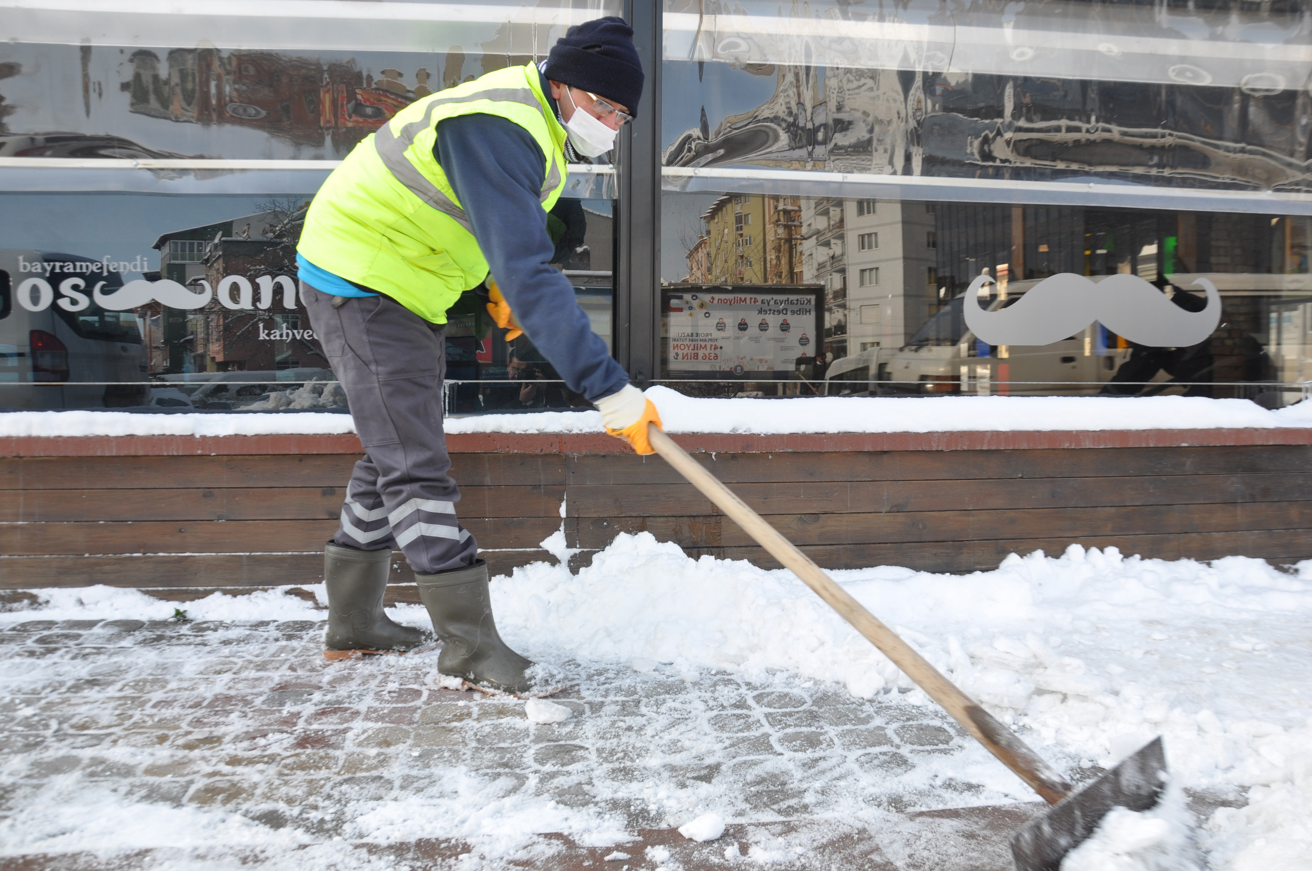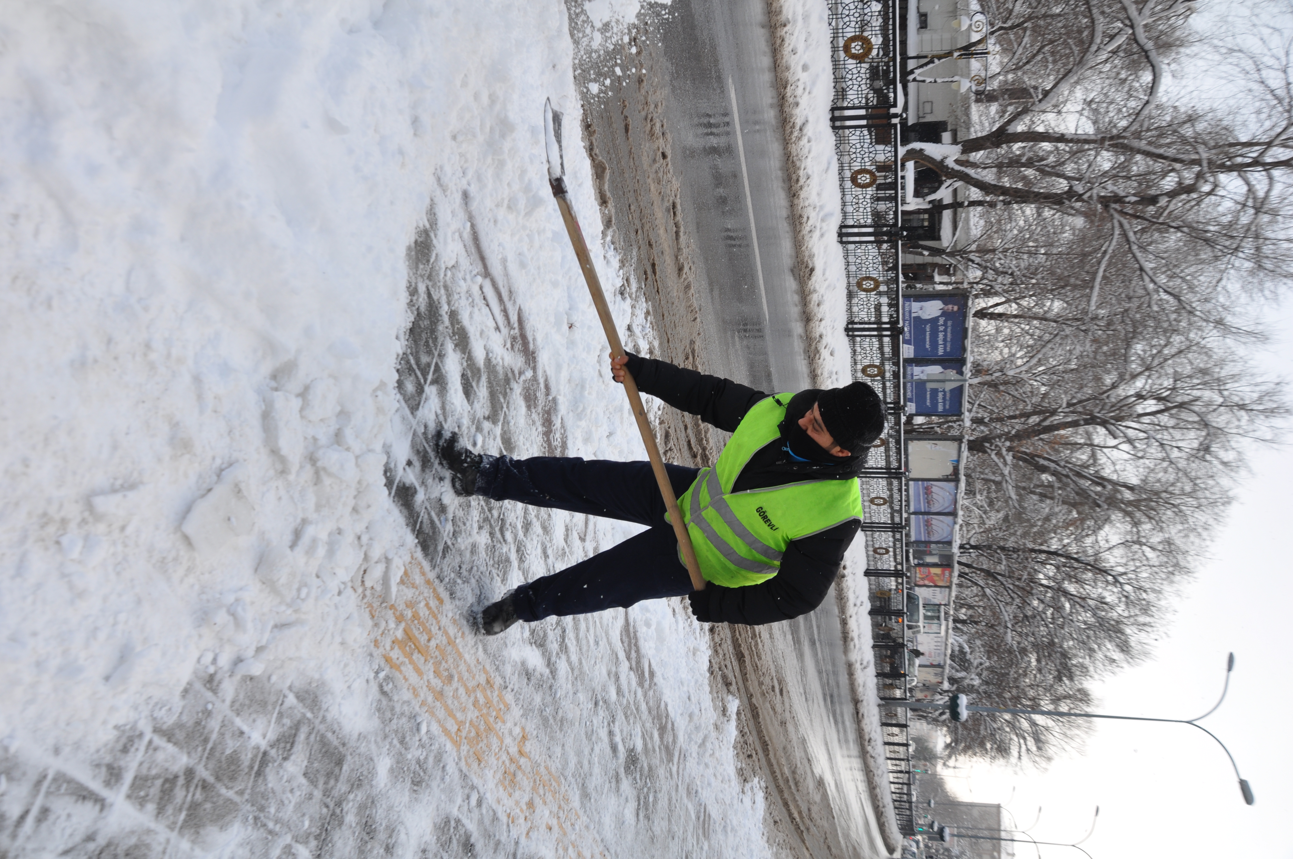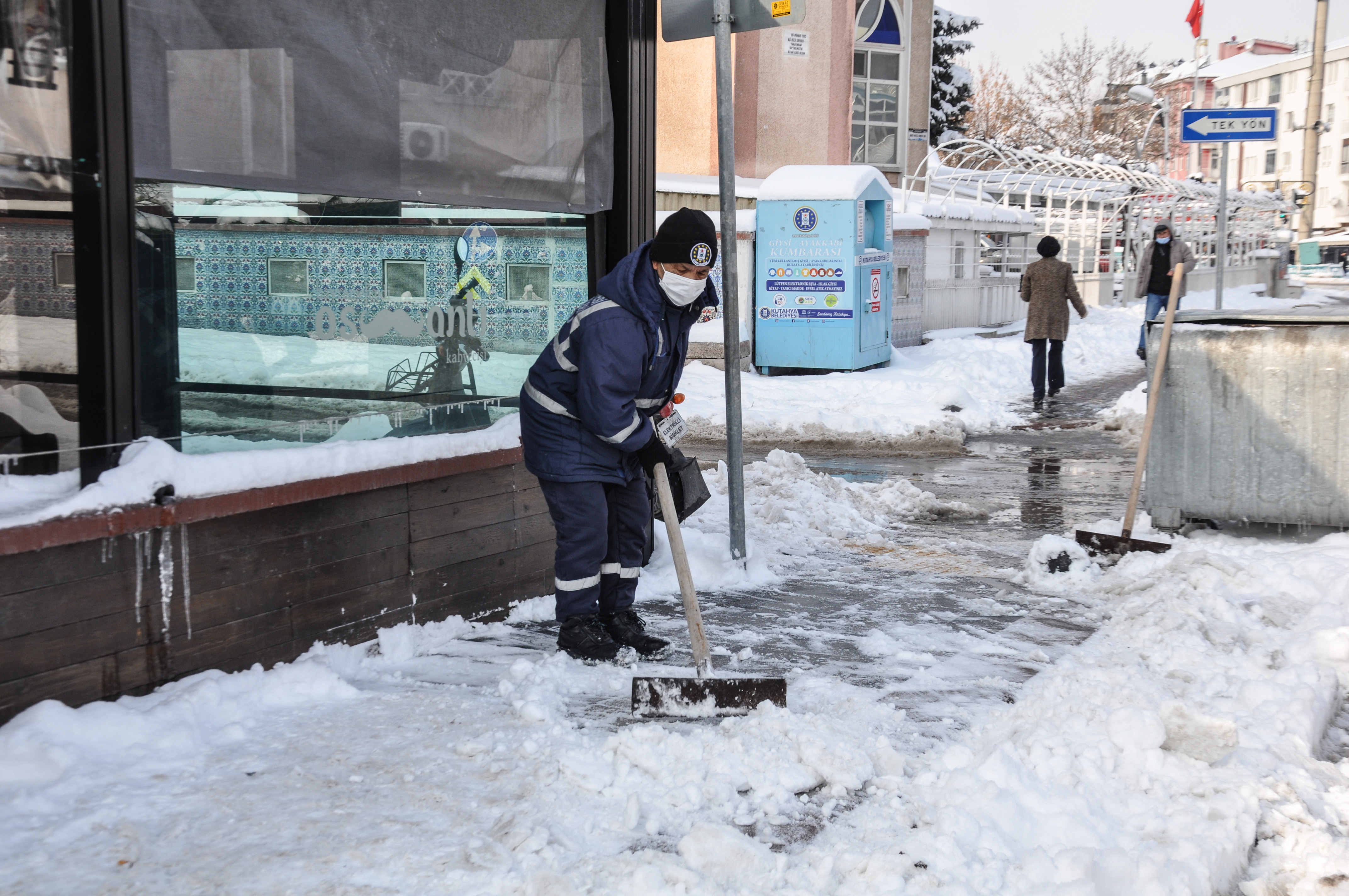 Hafta sonu kar yağışı sonrası, yol ve kaldırım temizleme süreci tüm hızı ile devam ediyor. Temizlik İşleri Müdürlüğü ile Park ve Bahçeler Müdürlüğüne bağlı ekipler, ana arterlerde kar temizleme çalışmalarını, hummalı bir şekilde sürdürüyor. Hafta sonu etkili olan kar yağışı sonrasında Kütahya Belediyesi Temizlik İşleri Müdürlüğüne bağlı 50 kişilik ekip iki vardiya şeklinde çalışmalarını sürdürürken, Park ve Bahçeler Müdürlüğüne bağlı 23 kişilik ekip te tek vardiya şeklinde kaldırım temizleme çalışmalarını sürdürüyor. Ana arterlerin dışında hastaneler bölgesinde de çalışmalar aralıksız devam ediyor. Ekipler el kar küreme makinesi, kazma, kürek, buz kırıcı gibi ekipmanlarla kaldırımlarda kar temizliği yaparken, tuzlama çalışmaları da hız kesmeden devam ediyor.
