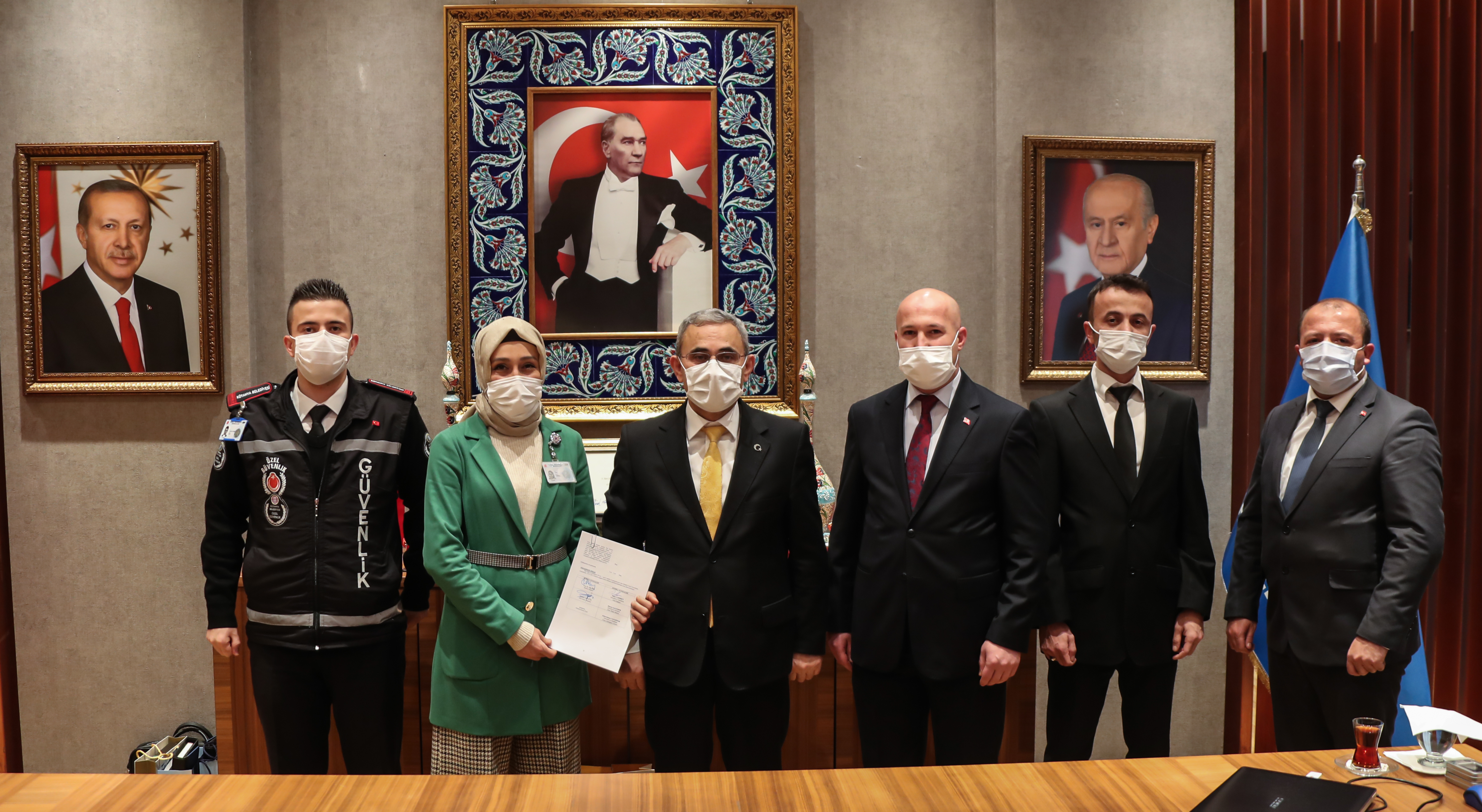 Kütahya Belediyesinde görev alan 52 güvenlik personeline kapsayan toplu iş sözleşmesi, Belediye Başkanı Prof. Dr. Alim Işık’ın makamında Güvenlik ve Savunma İşçileri Sendikası ile imzalandı. İmzalanan toplu sözleşme ile en düşük maaş 3200 TL oldu. Mahalli İdareler İşverenleri Sendikası ile Güvenlik ve Savunma İşçileri Sendikası arasında Kütahya Belediyesinde çalışan özel güvenlik personeline yönelik toplu iş sözleşmesi imzalandı. İmza töreninde konuşan Kütahya Belediye Başkanı Prof. Dr. Alim Işık, Kütahya Belediyesinde yine bir ilkin yaşandığını söyledi. Başkan Işık “Bugün onurlu bir günü yaşıyoruz ve hayırlı bir iş için bir araya geldik. Kütahya Belediyesi Özel Güvenlik Personel Anonim Şirketi adına Mahalli İdareler İşverenleri Sendikası ile Güvenlik ve Savunma İşçileri Sendikası arasında belediyemizde çalışan özel güvenlik personelimizin toplu iş sözleşmesini imzalayacağız. Sözleşmemiz 1 Temmuz 2020 tarihi ile 30 Haziran 2022 tarihi arasında ki süreyi kapsıyor. Daha önce belediyemiz bünyesinde çalışan işçilerimiz için belirlenen hakların tamamını özel güvenlik personelimiz içinde belirledik. En düşük asgari ücreti 3200 TL ve üzerinde olacak şekilde ayarladık. Bugüne ayrı anlam katan Güvenlik ve Savunma İşçileri Sendikası Genel Başkanı Ömer Çağrıcı ve belediyemiz adına görüşmeleri Mahalli İdareler İşveren Sendikası (MİS) Genel Sekreteri Mehmet Oruçöz, genel başkan danışmanı, İzmir Bölge Başkanı, toplu sözleşme uzmanımıza ayrı ayrı teşekkür ediyorum. Hayırlı uğurlu olsun. Kütahya Belediyesi yine bir ilke imza atmıştır” dedi.