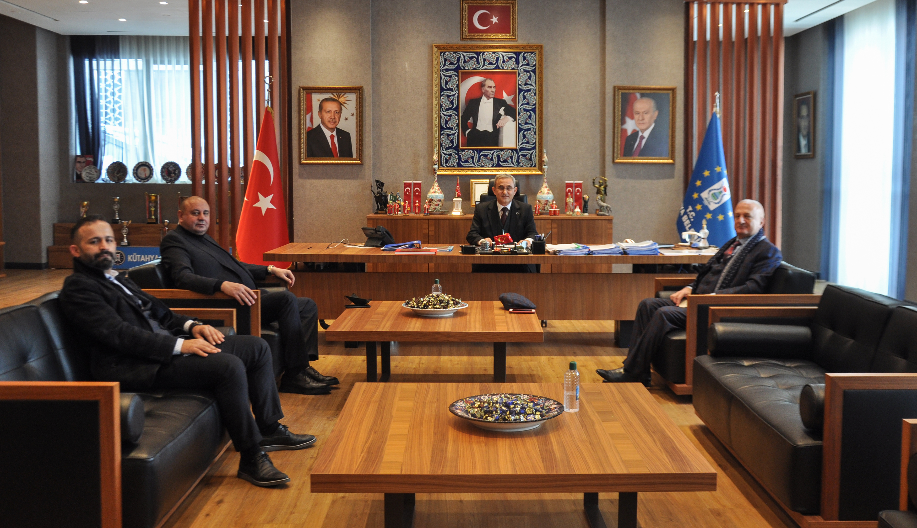 Trabzon Platformu Başkanı Ahmet Köksal Öztürk, Kütahya Belediye Başkanı Prof. Dr. Alim Işık’ı makamında ziyaret etti. Ziyarette karşılıklı fikir alışverişinde bulunuldu. Trabzon Platformu Başkanı Ahmet Köksal Öztürk, Belediye Başkanı Prof. Dr. Alim Işık’ı makamında ziyaret etti. Ziyarette Trabzon Platformunun yaptığı çalışmalar hakkında bilgiler veren platform başkanı Ahmet Köksal Öztürk, Kütahya Belediye Başkanı Prof. Dr. Alim Işık’a çalışmalarında başarılar diledi. İleriki dönemler için birlikte çalışma imkanı olması durumunda her türlü desteği vereceklerini belirten Başkan Işık, ziyaretten dolayı duyduğu memnuniyetini dile getirdi.