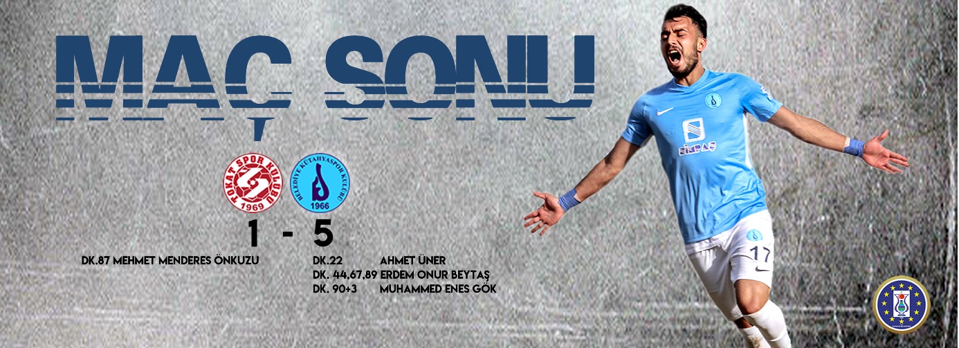 TFF Misli.com 3. Lig’de şampiyonluk yarışının iddialı takımı Belediye Kütahyaspor ligin 20. Haftasında Tokatspor ile deplasmanda karşılaştı. Maçı 1-5 gibi net bir skorla kazanan Mavi Şimşekler 90 dakika boyunca sahada ayak basılmadık yer bırakmadı. Ligin en iddialı takımlarından olan ve sezona şampiyonluk parolası ile çıkan Belediye Kütahyaspor 20. Haftada deplasmanda Tokatspor ile karşılaştı. Maça hızlı başlayan ve 22. Dakikada Ahmet Üner ile bulduğu golle 0-1 öne geçen Belediye Kütahyaspor ilk yarının son dakikalarında maçta hattrick yapan Erdem Onur Beytaş ile ikinci golü buldu ve soyunma odasına önde girdi. İkinci yarıda da rakip kalede ataklarını sıklaştıran Belediye Kütahyaspor yine Erdem Onur Beytaş ile iki gol daha buldu. 90+2’de sahne alan Muhammed Enes Gök ile maçın skorunu belirledi. Belediye Kütahyaspor Tokat deplasmanında aldığı önemli 3 puan ile şampiyonluk yarışına devam etti.