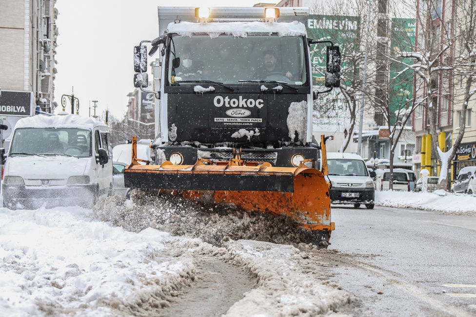 Pazar gecesi etkili olan ve meteorolojik verilere göre Salı günü de etkili olacak kar yağışı ile birlikte Kütahya Belediyesi karla mücadele ekipleri 24 saat esasına göre çalışmalarını sürdürüyor. Meteorolojinin sık sık uyarılarda bulunduğu kar yağışı ile ilgili teyakkuzda olan Kütahya Belediyesi kar temizleme ekipleri, kar yağışının başlaması ile birlikte ana arterler başta olmak üzere cadde ve sokaklarda kar temizleme, küreme ve tuzlama çalışmalarını başlattı. Kütahya Belediyesi Fen İşleri Müdürlüğü ekipleri ve Temizlik İşleri Müdürlüğü ekipleri, 24 saat esasına göre karla mücadele çalışmalarını, iki vardiya şeklinde 64 kişi gündüz, 64 kişi gece olmak üzere toplam, 128 personel 42 karla mücadele araçları ile birlikte çalışıyor. Yollarda yapılan tuzlama ve kar küreme çalışmalarının yanında, ana arterler üzerindeki kaldırımlarda da kar küreme ve temizleme çalışmaları sürüyor.