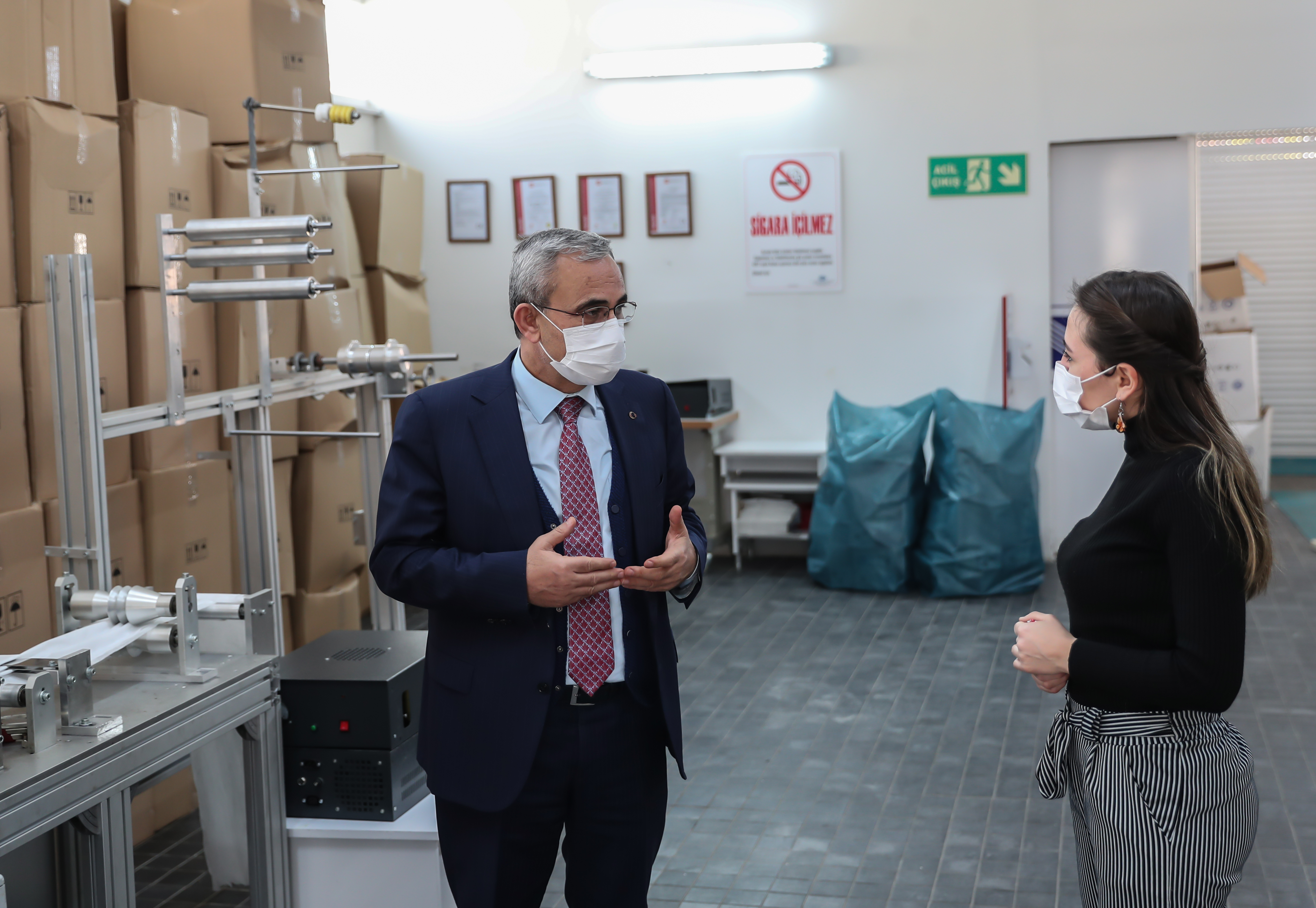 Kütahya Belediye Başkanı Prof. Dr. Alim Işık, Kütahya Belediyesi maske atölyesini ziyaret etti. Atölye sorumlusu Meltem Kahraman’dan maske üretimi ve hijyen paketleri hakkında bilgiler alan Başkan Işık, bugüne kadar Kütahya Belediyesinin 4 milyon adet maske üretimi gerçekleştirdiğini söyledi. Kütahya Belediye Başkanı Prof. Dr. Alim Işık, 2020 yılının ilk aylarında başlayan pandemi süreci ile birlikte kurulan maske üretim atölyesini ziyaret etti. Atölye sorumlusu Meltem Kahraman’dan bilgiler alan Başkan Işık, Kütahya Belediyesinin bugüne kadar 4 milyondan fazla maske üretimini gerçekleştirdiğini söyledi. Atölyede üretilen maskelerin desenli desensiz şekilde üretildiğini, ayrıca firmalardan gelen taleplere göre logolu olarak üretimin yapıldığını ifade eden Başkan Işık, hijyen paketlerini inceledi. Atölyede 6 kişinin istihdam edildiği bilgisini veren Başkan Işık, emeği geçen herkese teşekkür etti.