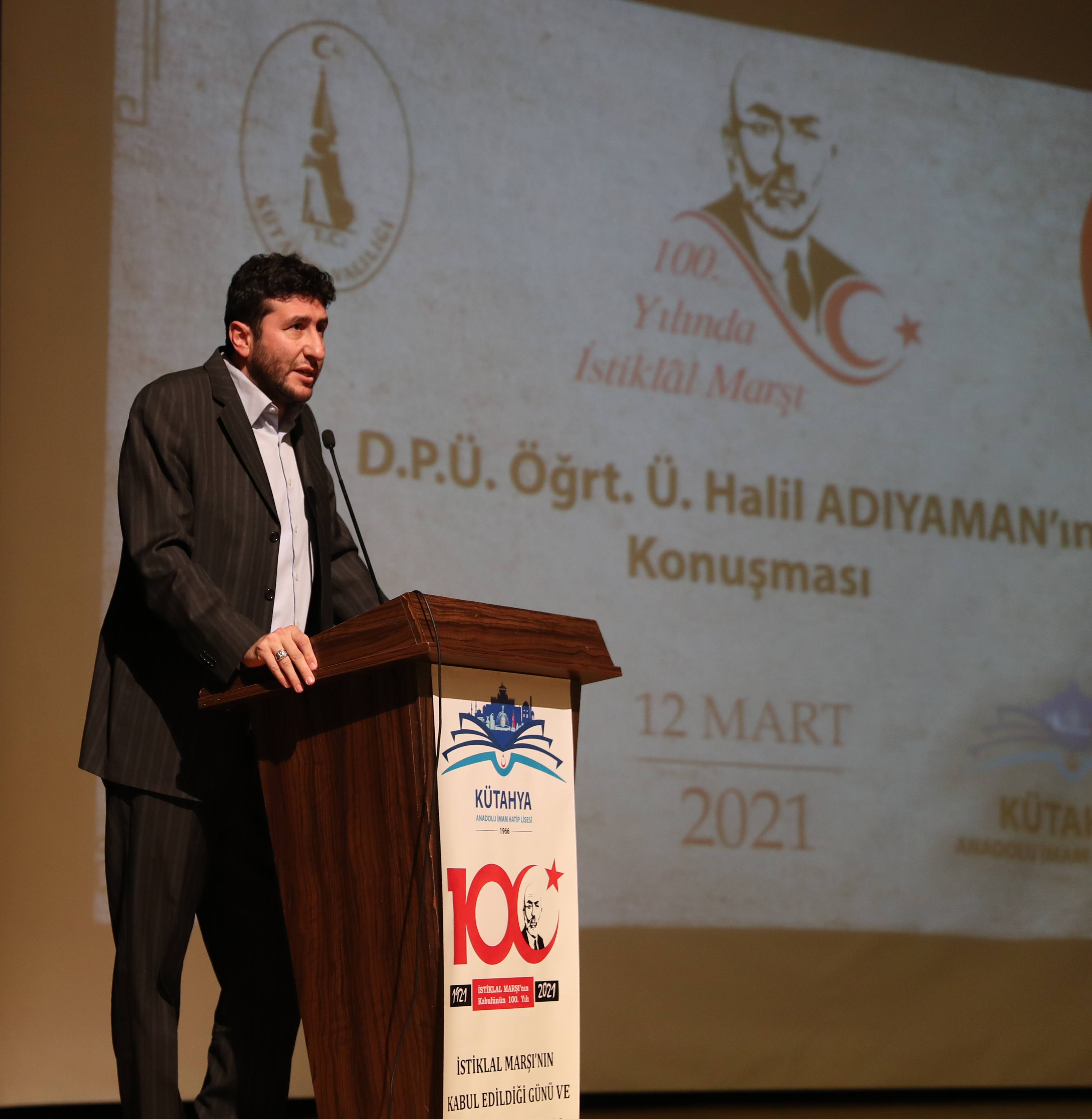 Türkiye’nin bağımsızlık savaşını ölümsüzleştiren İstiklal Marşı’nın kabulünün 100. yılı Kütahya’da coşkuyla kutlandı. Programa Kütahya Valisi Ali Çelik, Kütahya Belediye Başkanı Prof. Dr. Alim Işık ve il protokolü katıldı.Evliya Çelebi İmam Hatip Lisesi tarafından hazırlanan İstiklal Marşı’nın 100. Yılı ve Mehmet Akif Ersoy’u Anma Programı Hezar Dinari Kültür Merkezinde yapıldı. Saygı duruşunda bulunulması ve İstiklal Marşı’nın okunmasıyla başlayan program, Dumlupınar Üniversitesi Fen Edebiyat Fakültesi Öğretim Üyesi Halil Adıyaman’ın “10 Kıta Bir Vatan İlelebet İstiklal” başlıklı günün anlam ve önemini anlatan konuşmasıyla devam etti.