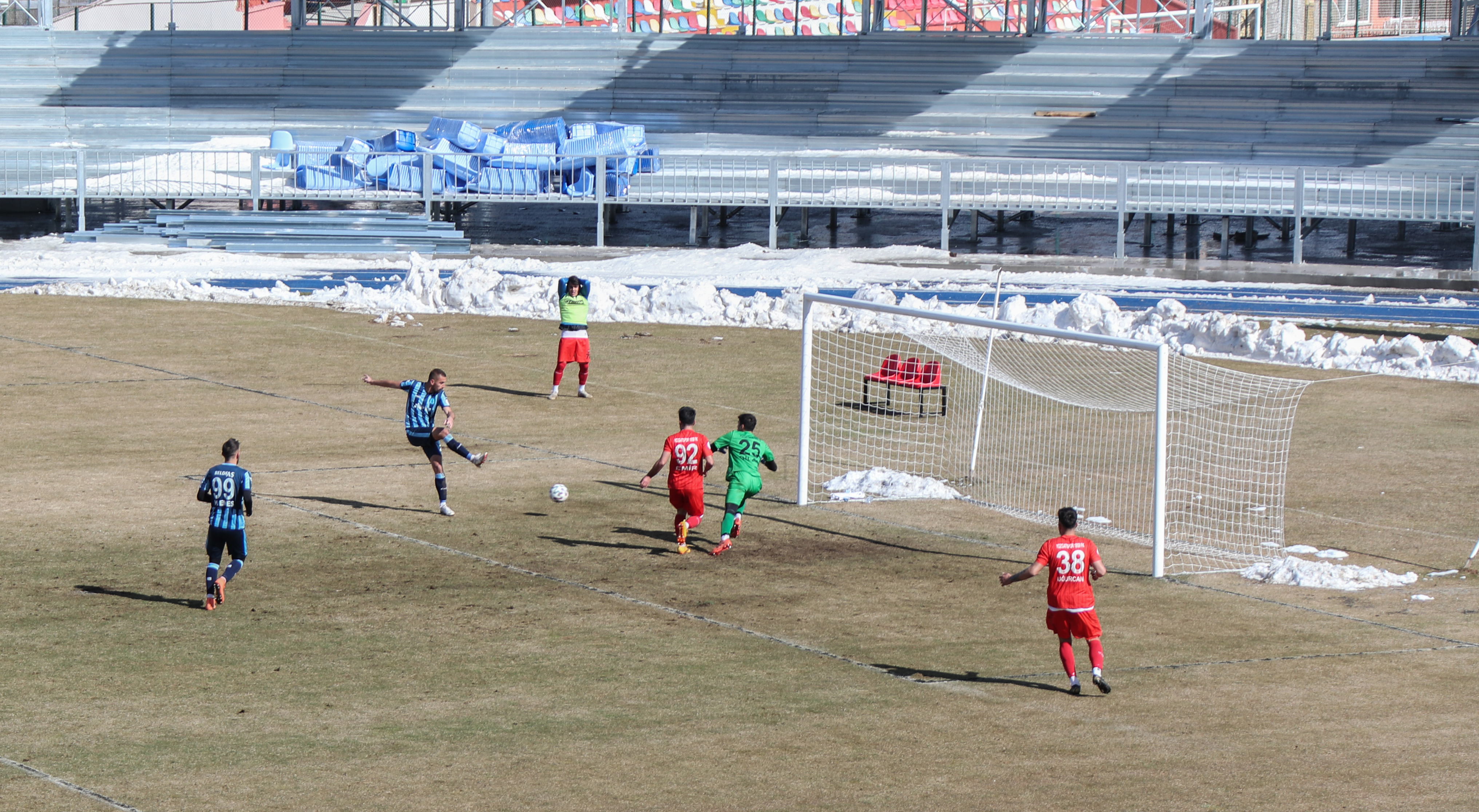TFF Misli.com 3. Lig’deki mücadelesini sürdüren Belediye Kütahyaspor, Yozgatspor 1959 FK’yı, 67. dakikada Ali Can Tez’in golü ile 1-0 mağlup etti. Mavi Şimşekler 50 puanla liderliğini korudu. Sezona ‘O Sene Bu Sene’ parolası ile başlayan ve oynadığı başarılı futbol ile göz dolduran Belediye Kütahyaspor, ligin 25. haftasında kendi evinde Yozgatspor’u konuk etti. Maçın ilk yarısında, rakip kalede aradığı golü bulamayan Mavi Şimşekler soyunma odasına 0-0 berabere girdi. İkinci yarıda da gol arayan Belediye Kütahyaspor 67. dakikada Ali Can Tez ile golü buldu. Kalan dakikalarda başka gol sesi çıkmayınca Mavi Şimşekler maçtan 1-0 galip ayrılarak şampiyonluk yolunda önemli bir 3 puanı daha hanesine yazdırdı. Ligin bitimine 9 hafta kala Belediye Kütahyaspor 4 maçını kendi evinde, 5 maçını da deplasmanda oynayacak. 50 puanla liderliğini koruyan Belediye Kütahyaspor, inandığı şampiyonluk yolunda emin adımlarla ilerliyor.