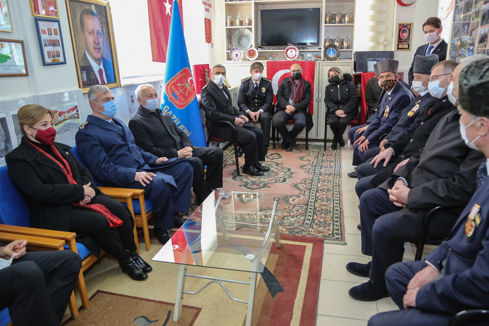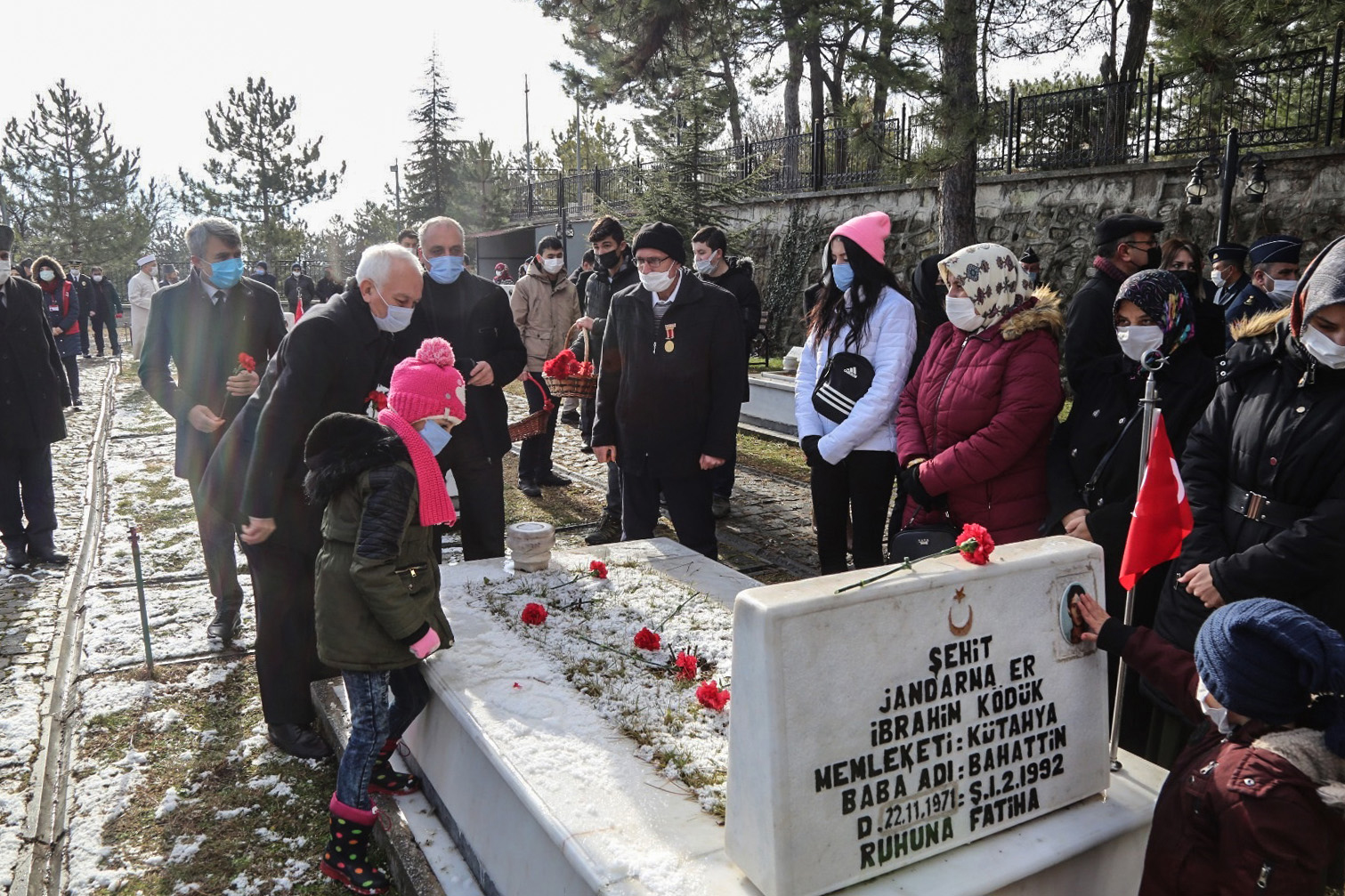 Program protokol mensuplarının, Türkiye Harp Malulü Gaziler, Şehit Dul ve Yetimleri Derneği Kütahya Şube Başkanlığı ziyareti ile devam etti. Ziyarette dernek başkanı Asım Okat, Vali Çelik ve Başkan Vekili Özden ile birlikte protokol üyelerine dernek çalışmaları hakkında bilgiler vererek günün anlam ve önemine ilişkin bir konuşma yaptı. Protokol üyeleri, son olarak Polis Şehitliğini ziyaret ederek, şehit olan tüm asker ve polisleri yad ettiler.