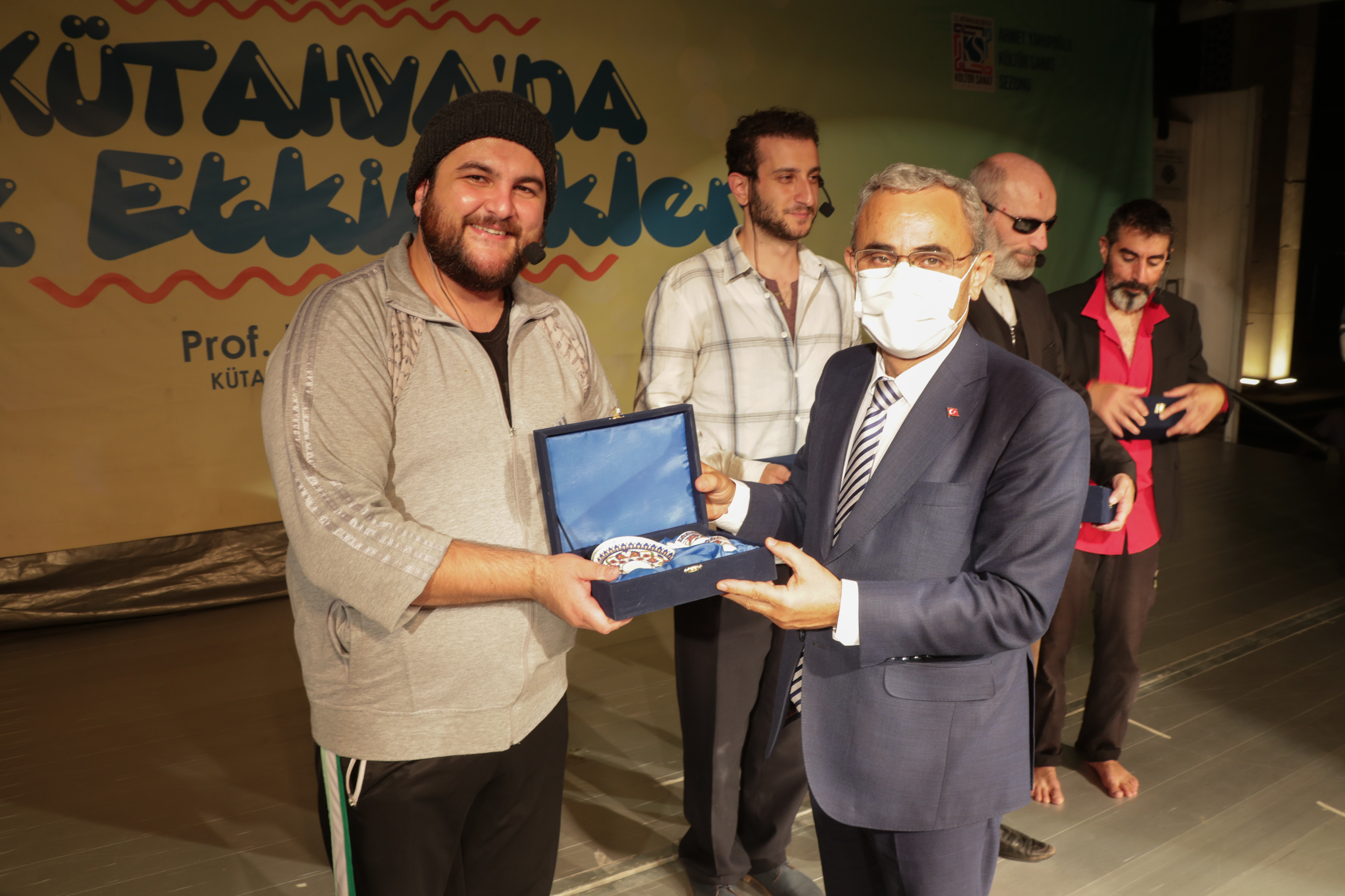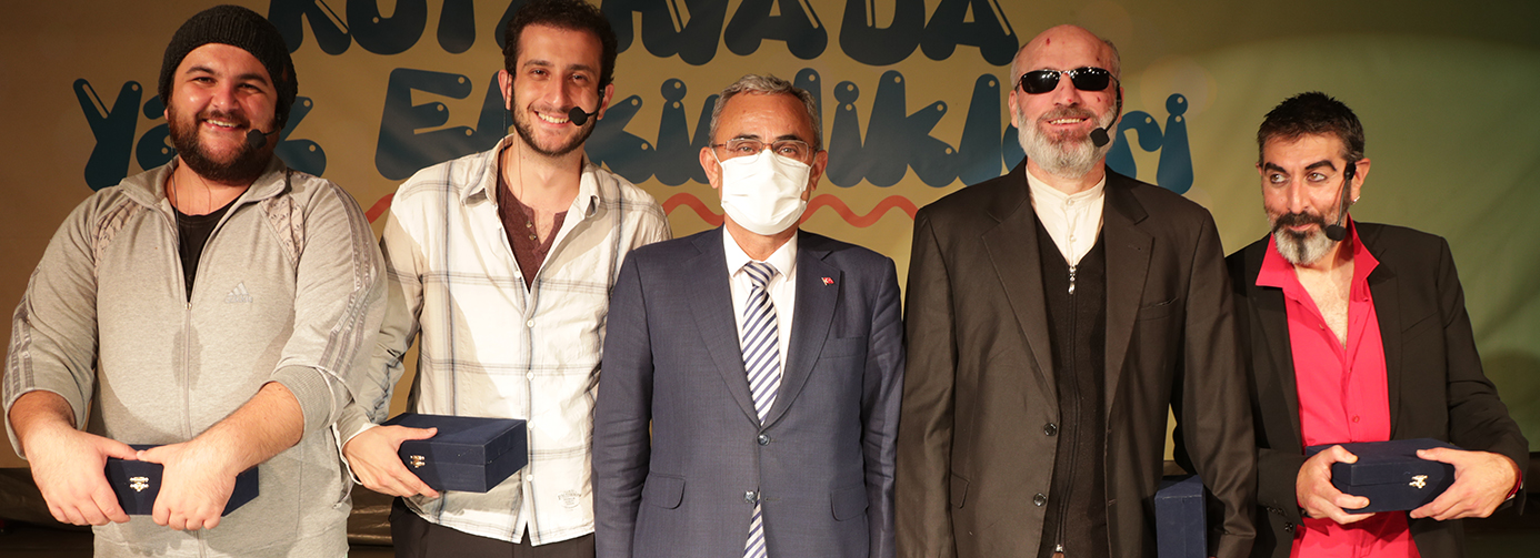Kütahya Belediyesi Yaz Etkinlikleri kapsamında sahnelenen ‘Son Çıkış’ oyunu belediye binası önünde sahnelendi. Belediye Başkanı Prof. Dr. Alim Işık’ın da takip ettiği oyunu vatandaşlar ilgi ile izledi. Ahmet Yakupoğlu Kültür ve Sanat Sezonu kapsamında düzenlenen Yaz Etkinlikleri devam ediyor. Dün akşam belediye binası önünde tek perdelik komedi oyunu ‘Son Çıkış’ sahnelendi. Belediye Başkanı Prof. Dr. Alim Işık’ın da takip ettiği tiyatro oyununu Yunus Emre Obut yazdı ve yönetti. İsmail Emre Biliciler, Fatih Akçin, Yunus Emre Obut, Ihsan Sever’in etkileyici oyunu ile sahnelenen tiyatro oyunu vatandaşlar tarafından beğeni ile takip edildi. Oyun sonunda, oyuncuları tebrik eden ve Kütahya halkının bu tür organizasyonları pandemi sürecine özlediğini dile getiren Başkan Işık, oyunculara günün anısına Kütahya’nın simgelerinden olan kahve fincanı hediye etti.