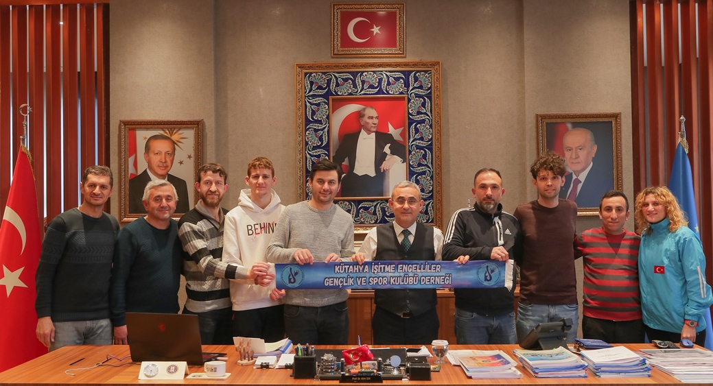 Kütahya İşitme Engelliler Gençlik ve Spor Kulübü Derneği, Belediye Başkanı Prof. Dr. Alim Işık’ı makamında ziyaret etti. Kütahya İşitme Engelliler Gençlik ve Spor Kulübü yönetici ve sporcuları Manisa ilinde gerçekleştiren Türkiye İşitme Engelliler 1. Futbol ligi müsabakaları ve Mersin ilinde yapılan atletizm şampiyonası sonrası, Kütahya Belediye Başkanı Prof. Dr. Alim Işık’a nezaket ziyaretinde bulundular. Kulüp yöneticileri, ziyarette Başkan Işık’a, kulübe gösterdiği ilgi ve desteklerden dolayı teşekkür etti.
