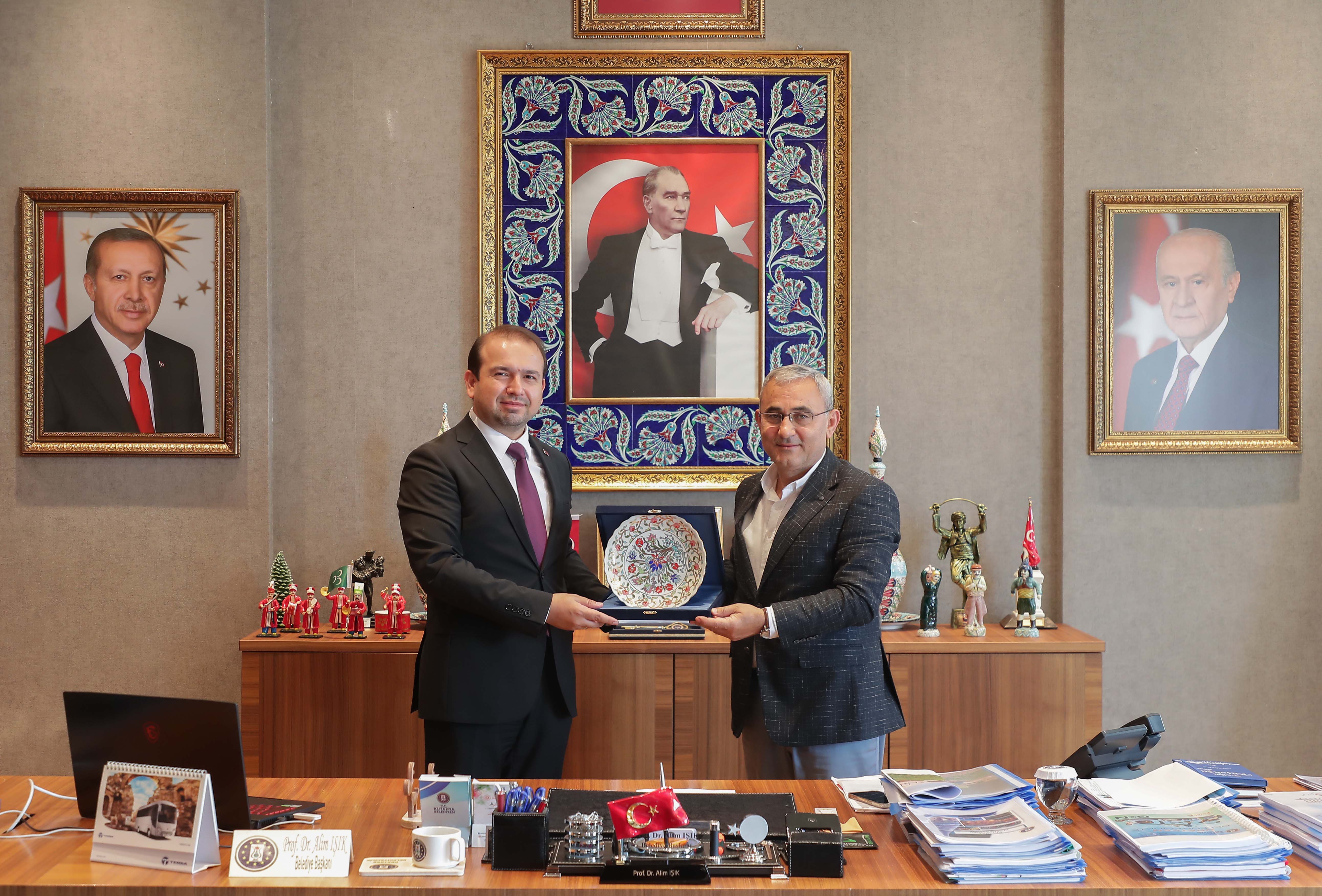 Kütahya İl Sağlık Müdürü Dr. Eser Şenkul, Belediye Başkanı Prof. Dr. Alim Işık’a nezaket ziyaretinde bulundu.Başkanlık makamında gerçekleşen ziyaretten duyduğu memnuniyeti dile getiren Belediye Başkanı Prof. Dr. Alim Işık, Kütahya İl Sağlık Müdürü Dr. Eser Şenkul’a Kütahya Çini’si hediye ederek, çalışmalarında başarılar diledi.