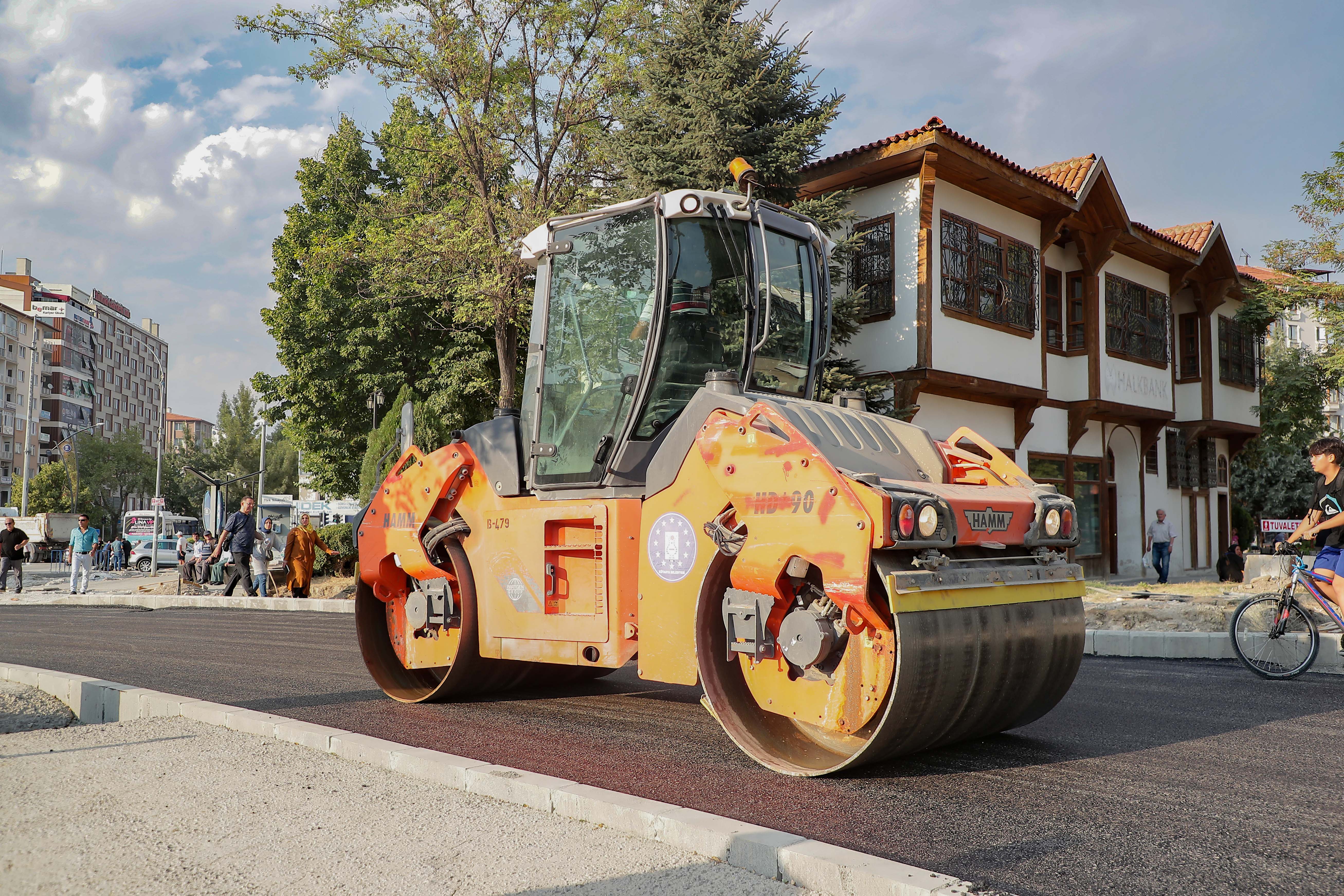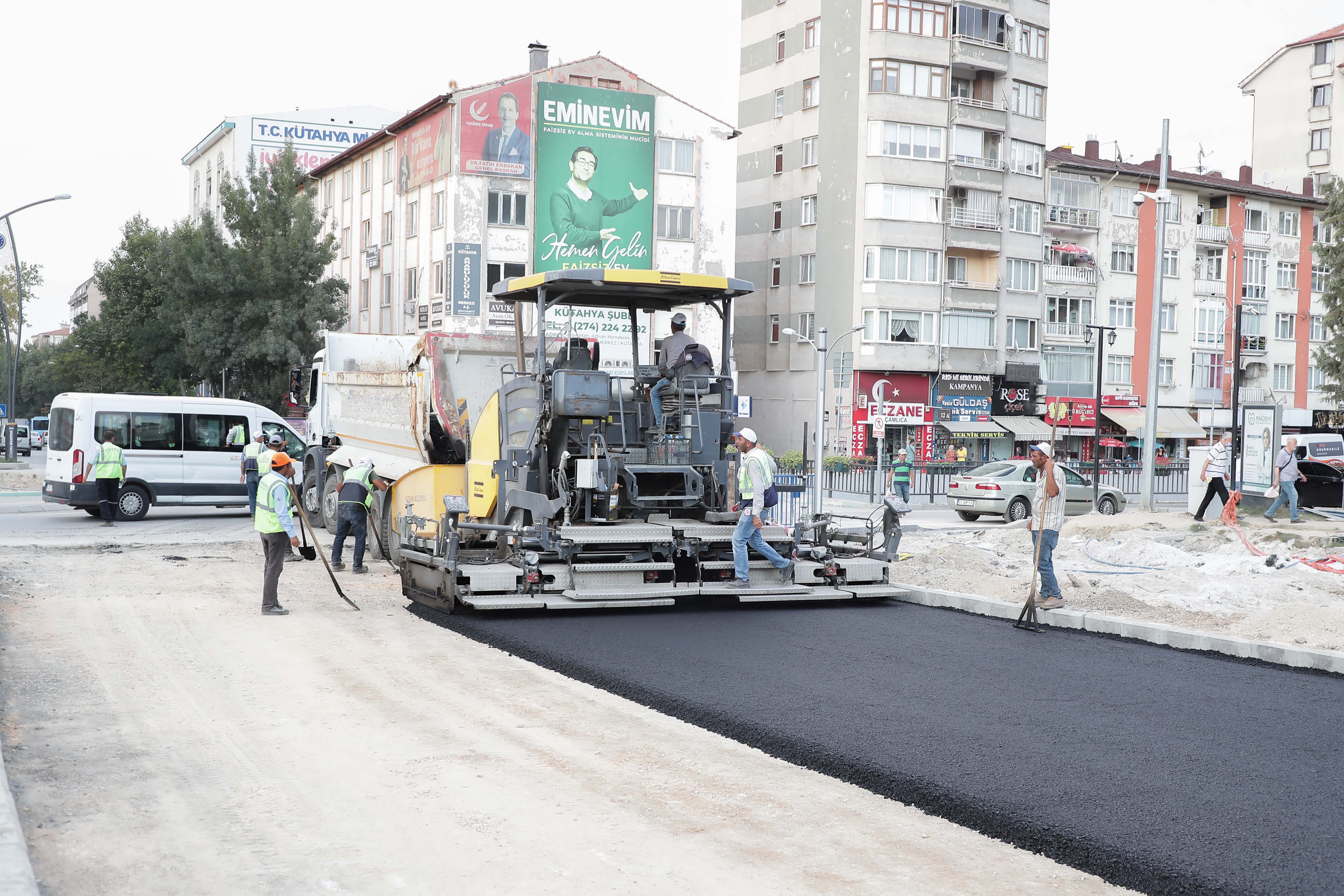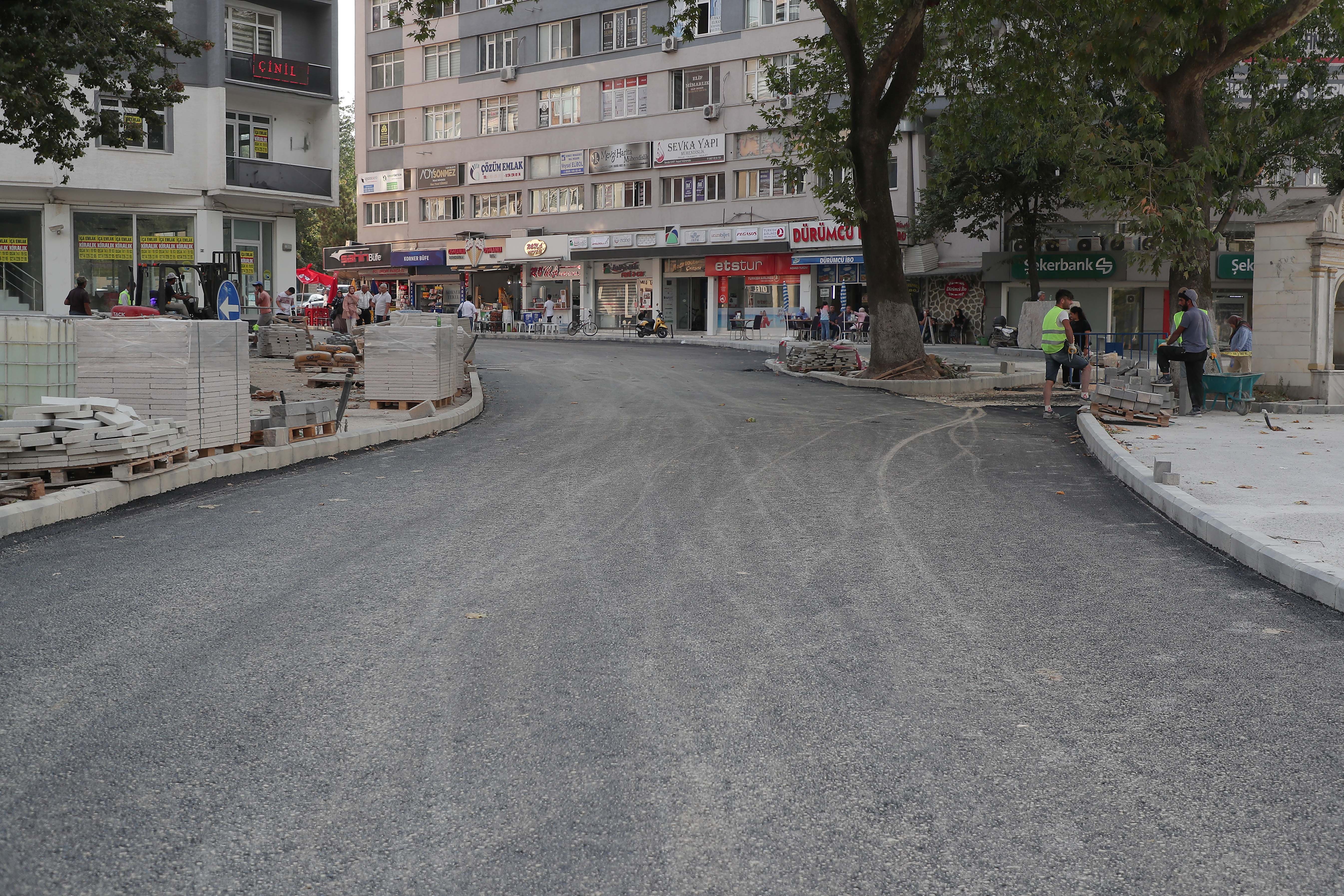 Zafer meydanında yapılan çalışmalarda 480 ton binder asfalt serimi yapıldı. Kaldırımlardaki kilit taşı çalışmaları devam etmektedir.