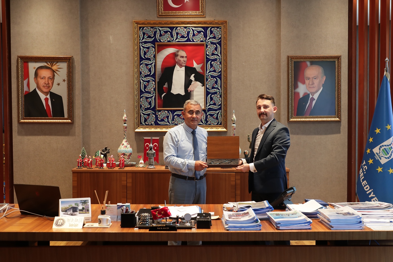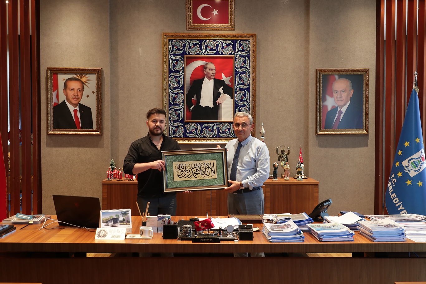 Sanat Tarihçisi Mehmet Emin Başyiğit, Kütahya’da kurulacak olan Türk Tesbih Sanatı Müzesi için Belediye Başkanı Prof. Dr. Alim Işık ile makamında görüştü.Önümüzdeki günlerde Kütahya Belediyesi fuaye alanında açılacak olan Geleneksel Türk Sanatları Sergisi ve yine önümüzdeki aylarda açılması planlanan Türk Tesbih Sanatı Müzesi hakkında fikir alışverişinde bulunmak üzere Belediye Başkanı Prof. Dr. Alim Işık’ı makamında ziyaret eden Sanat Tarihçisi Mehmet Emin Başyiğit, Başkan Işık’a verdiği destekler için teşekkür etti.