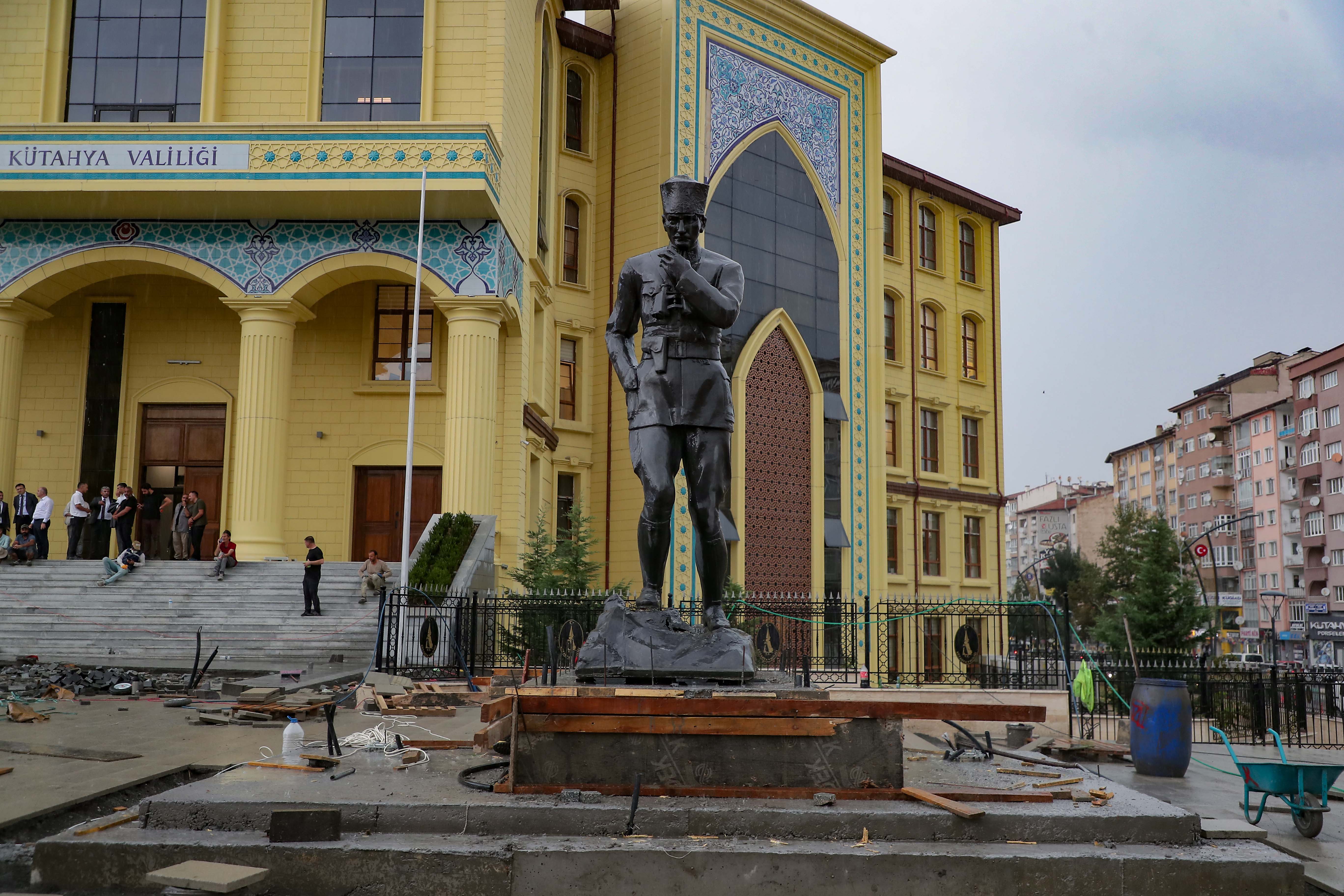 Ulu Önder Gazi Mustafa Kemal Atatürk’ün heykeli Kütahya Valiliği binası girişi önündeki kaidesine titiz bir çalışma ile yerleştirildi. Atatürk heykeli, karşısında 26 metrelik gönderde duran Türk Bayrağı ile birlikte Zafer Meydanı’nın anlamına anlam, değerine değer kattı.