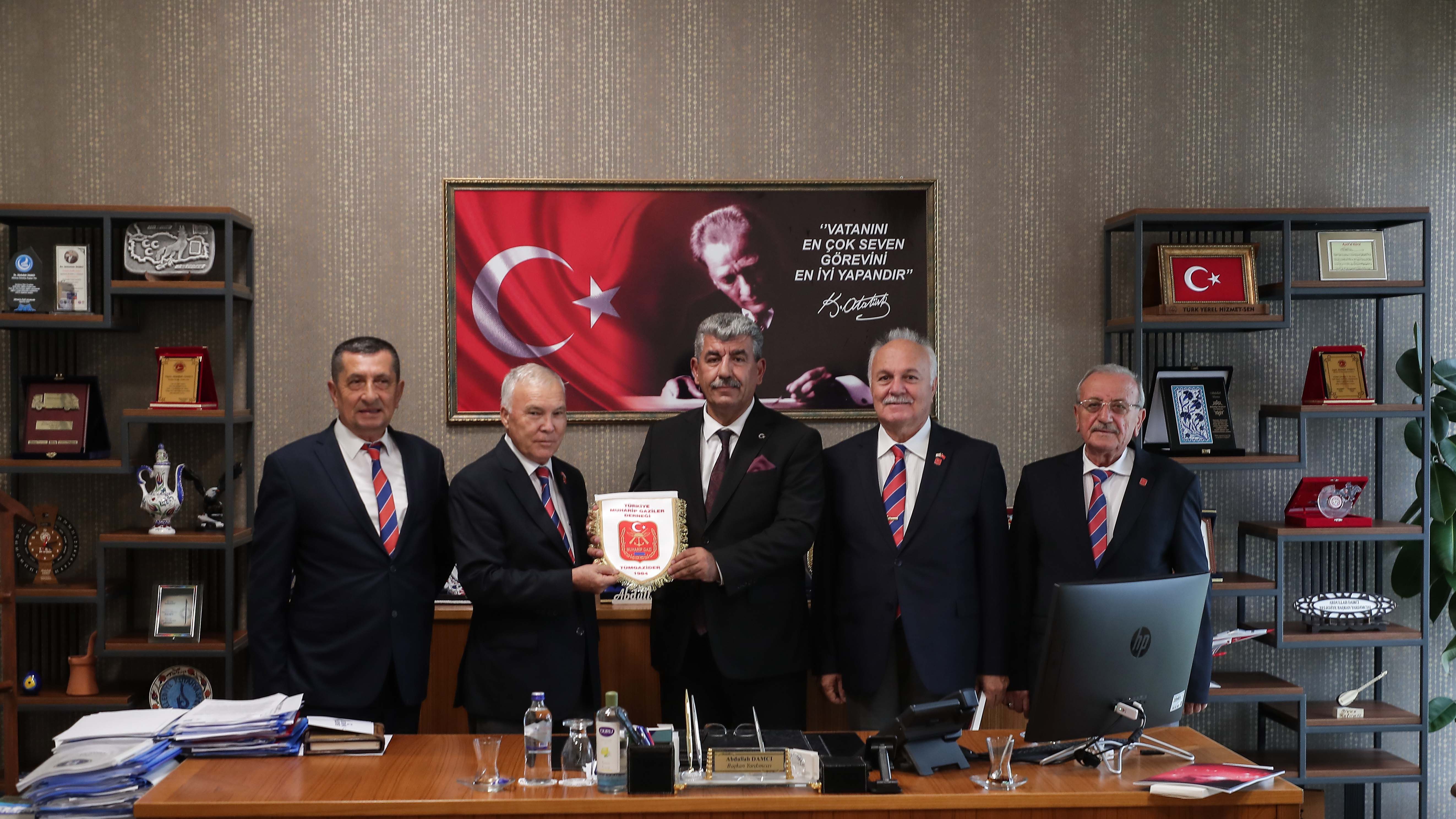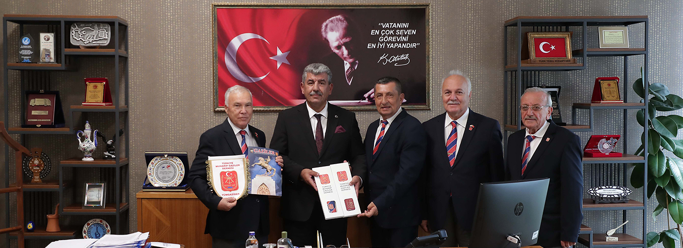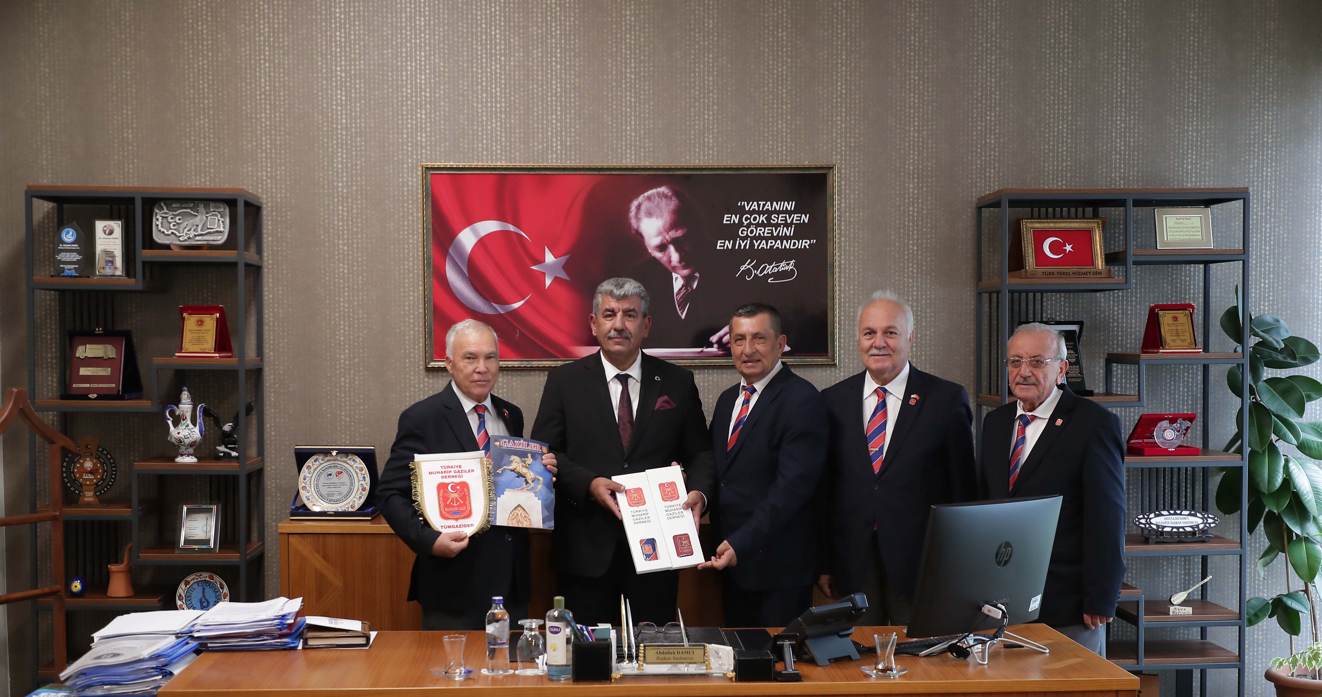 Büyük Zafer’in 100. Yıl kutlamaları için Kütahya’da bulunan Türkiye Muharip Gaziler Derneği Genel Başkanı Beyazıt Yumuk ve genel başkan yardımcıları ile birlikte Belediye Başkan Vekili Abdullah Damcı’yı makamında ziyaret etti. Kütahya Belediye Başkan Vekili Abdullah Damcı’yı makamında ziyaret eden Türkiye Muharip Gaziler Derneği Genel Başkanı Beyazıt Yumuk dernek çalışmaları hakkında bilgi verdi.