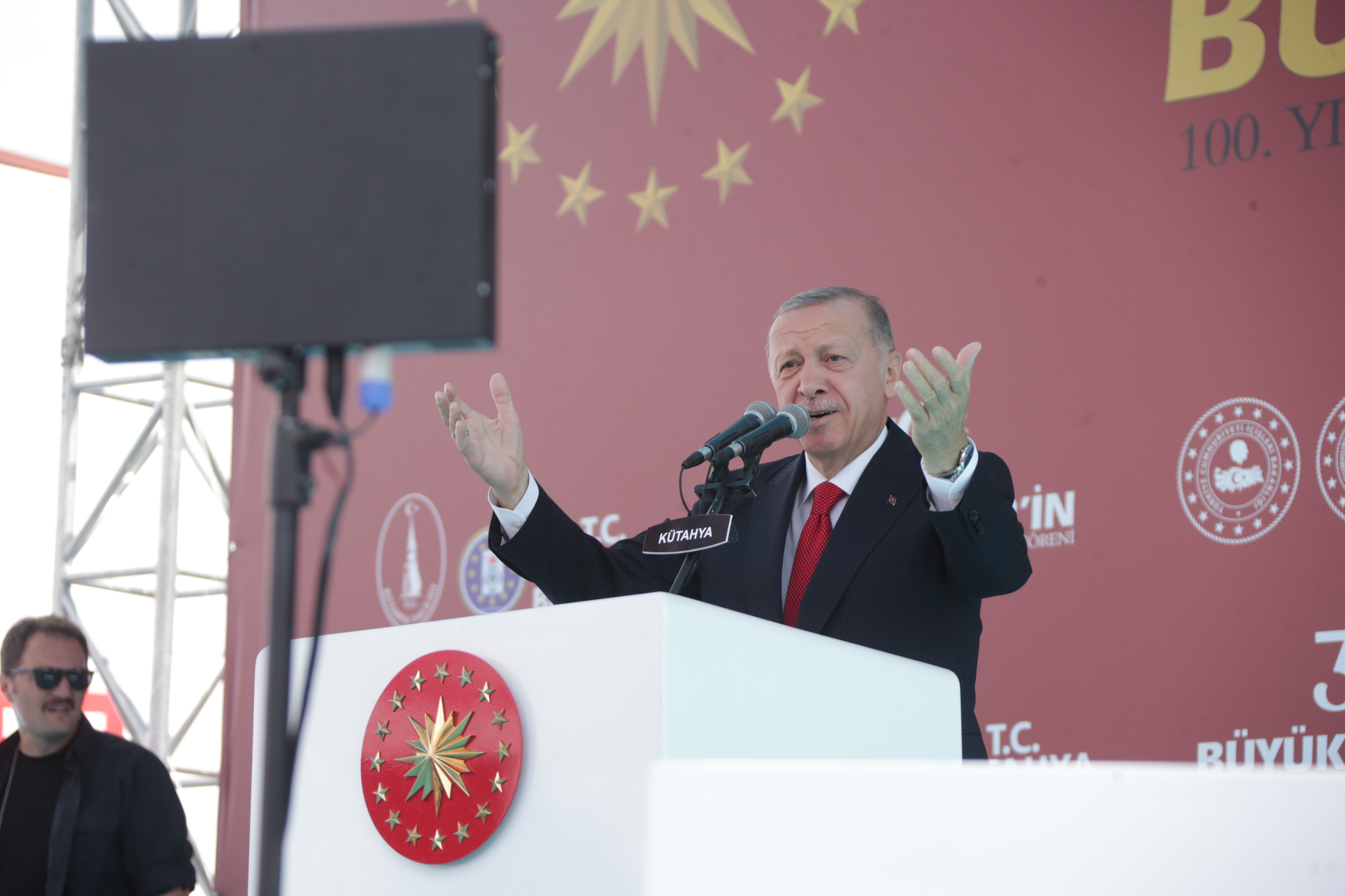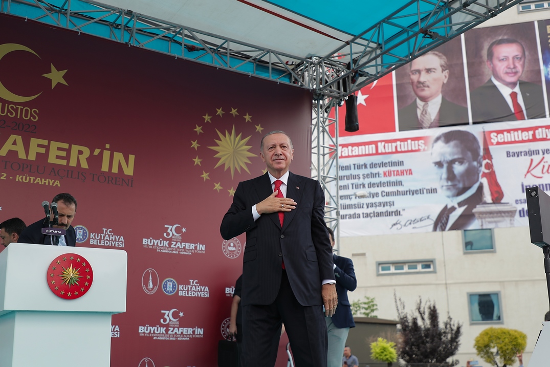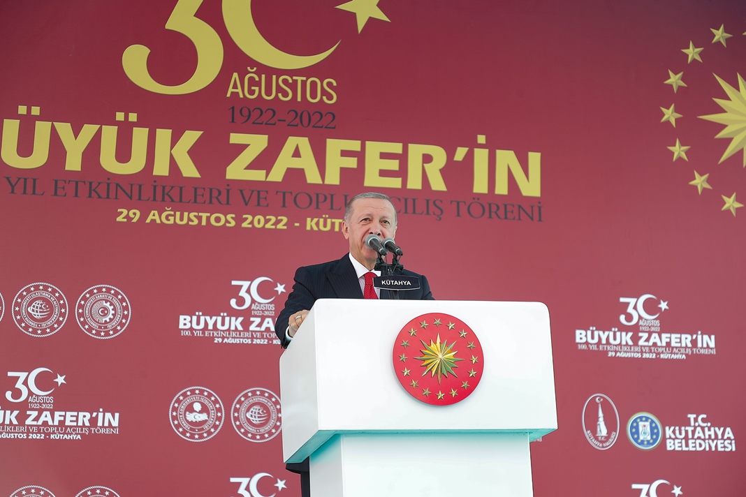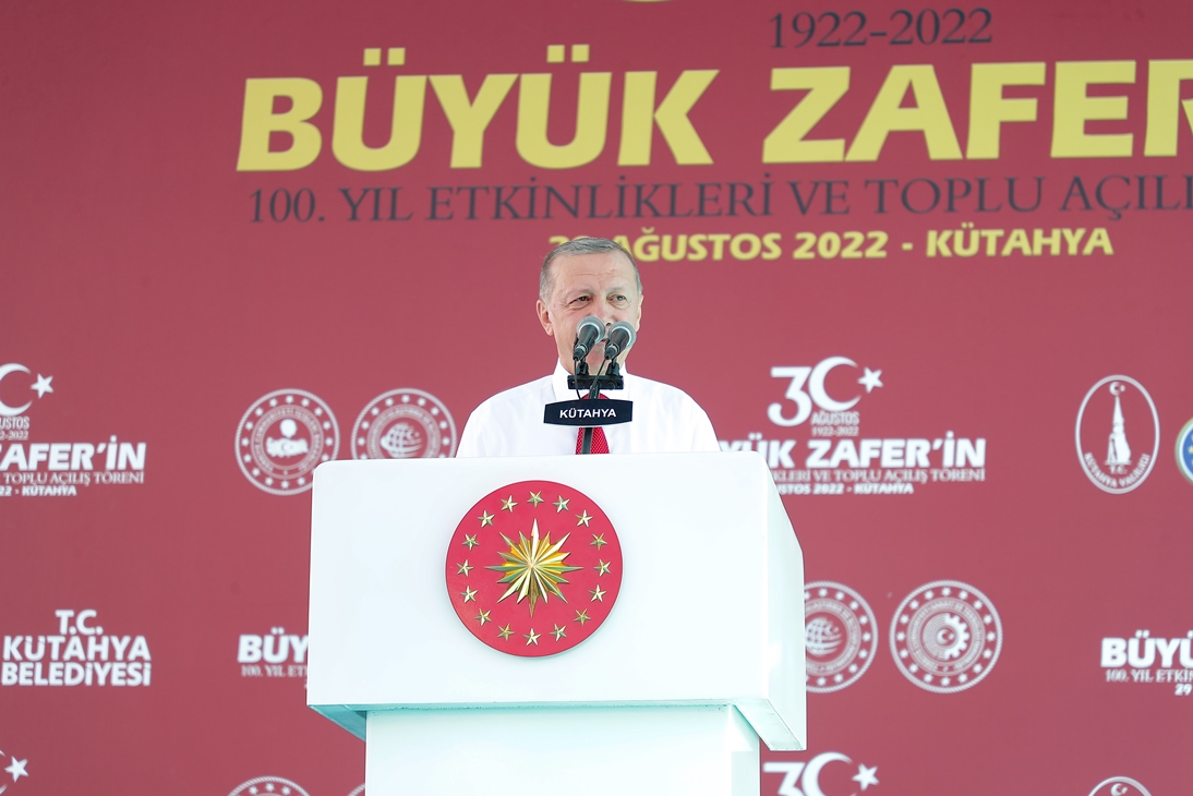 Cumhurbaşkanı Recep Tayyip Erdoğan, 30 Ağustos 1922-2022 Büyük Zafer’in 100. Yılı Etkinlikleri Kütahya Toplu Açılış Töreni için Kütahya’ya geldi. Dumlupınar Stadyumunda il protokolü tarafından karşılanan Cumhurbaşkanı Recep Tayyip Erdoğan, yeni kapalı spor salonu önünde bulunan alanına geçti. Cumhurbaşkanı Erdoğan’dan önce Kütahyalılara selamla konuşması yapan İç İşleri Bakanı Süleyman Soylu, Tarım ve Orman Bakanı Prof. Dr. Vahit Kirişci ve Cumhurbaşkanı Yardımcısı Fuat Oktay Kütahyalıların Zafer Bayramı’nı kutladı.