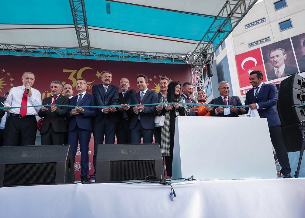 Cumhurbaşkanı Erdoğan konuşmasının ardından toplu açılış kurdelesini, Cumhurbaşkanı Yardımcısı Fuat Oktay, Tarım ve Orman Bakanı Prof. Dr. Vahit Kirişci, Kütahya Valisi Ali Çelik, AK Parti Kütahya Milletvekilleri, İshak Gazel, Ceyda Çetin Erenler, Ahmet Tan, MHP Kütahya Milletvekili Ahmet Erbaş, Kütahya Belediye Başkanı Prof. Dr. Alim Işık, AK Parti Kütahya İl Başkanı Mustafa Önsay, MHP Kütahya İl Başkanı Selçuk Alıç ile birlikte kesti.
