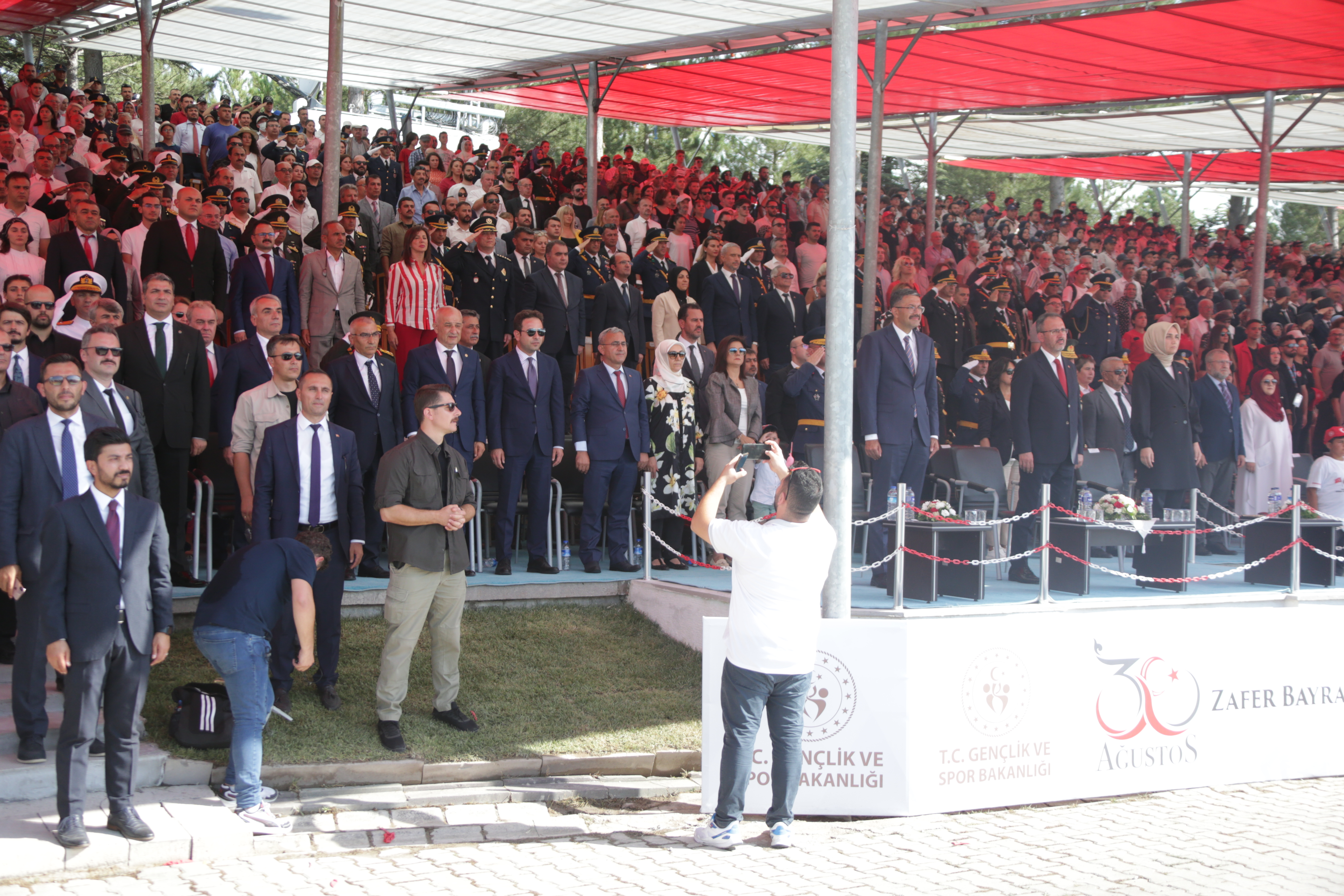 Törenlere, Gençlik ve Spor Bakanı Dr. Mehmet Muharrem Kasapoğlu, Kütahya Valisi Ali Çelik, Afyonkarahisar Valisi Doç. Dr. Kübra Güran Yiğitbaşı, Kütahya Hava Er Eğitim Tugay ve Garnizon Komutanı Hava Tuğgeneral Necati Gündüz, Afyonkarahisar İkmal ve Garnizon Komutanı Tuğgeneral Osman Alp, Kütahya AK Parti Milletvekilleri İshak Gazel, Ahmet Tan, Ceyda Çetin Erenler, MHP Kütahya Milletvekili Ahmet Erbaş, CHP Kütahya Milletvekili Dr. Fazıl Kasap, Kütahya Belediye Başkanı Prof. Dr. Alim Işık, Afyonkarahisar Belediye Başkanı Mehmet Zeybek, AK parti Kütahya İl Başkanı Mustafa Önsay, MHP Kütahya İl Başkanı Selçuk Alıç, AK Parti Merkez İlçe Başkanı İsmail Çağlar Bayırcı, MHP Kütahya Merkez İlçe Başkanı Ayhan Toy, Türkiye’nin farklı illerinden gelen Gazeteciler Cemiyet Başkanları, Türkiye’nin tüm illerinden gelen gaziler, şehit yakınları, daire müdürleri ve çok sayıda vatandaş katıldı.
