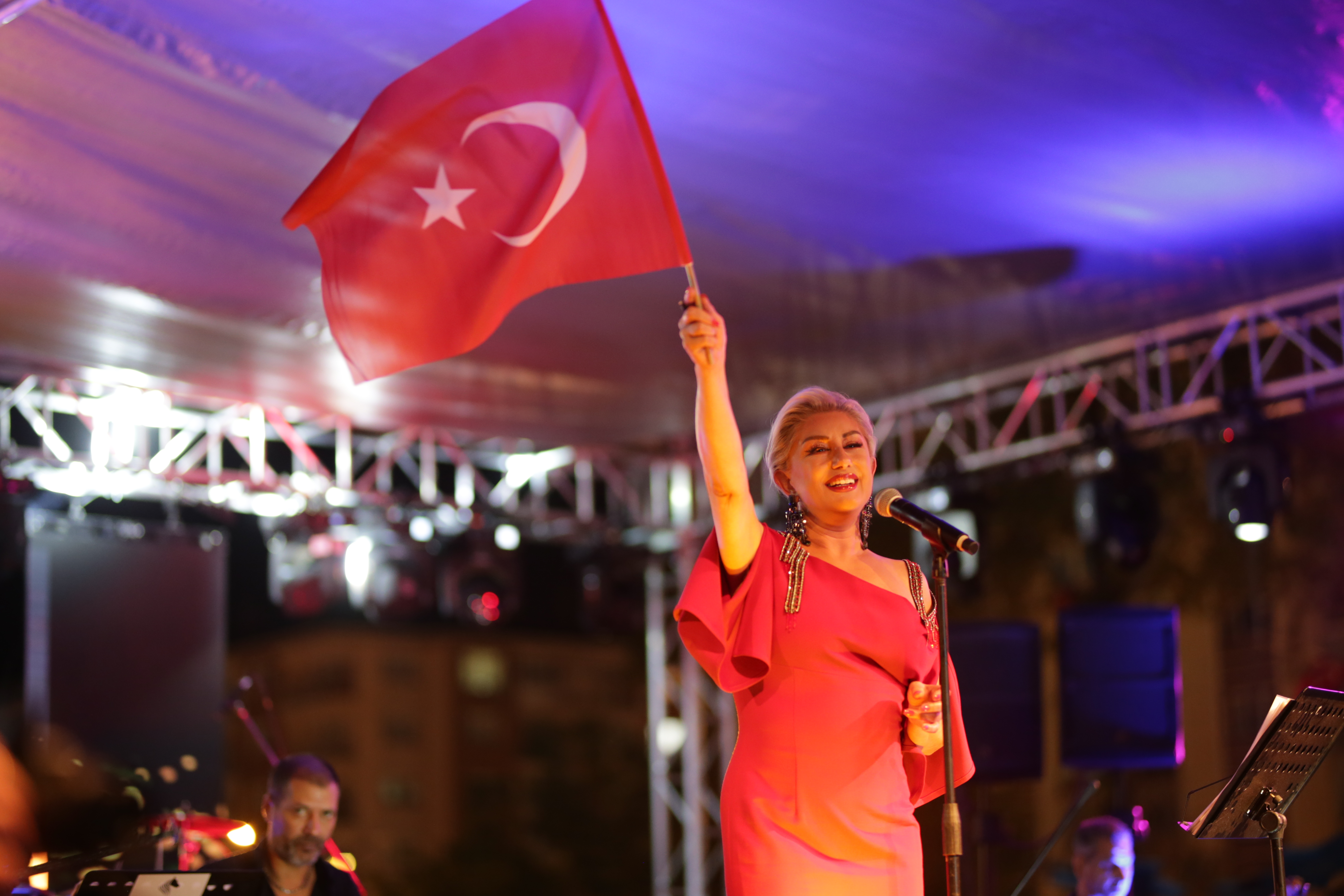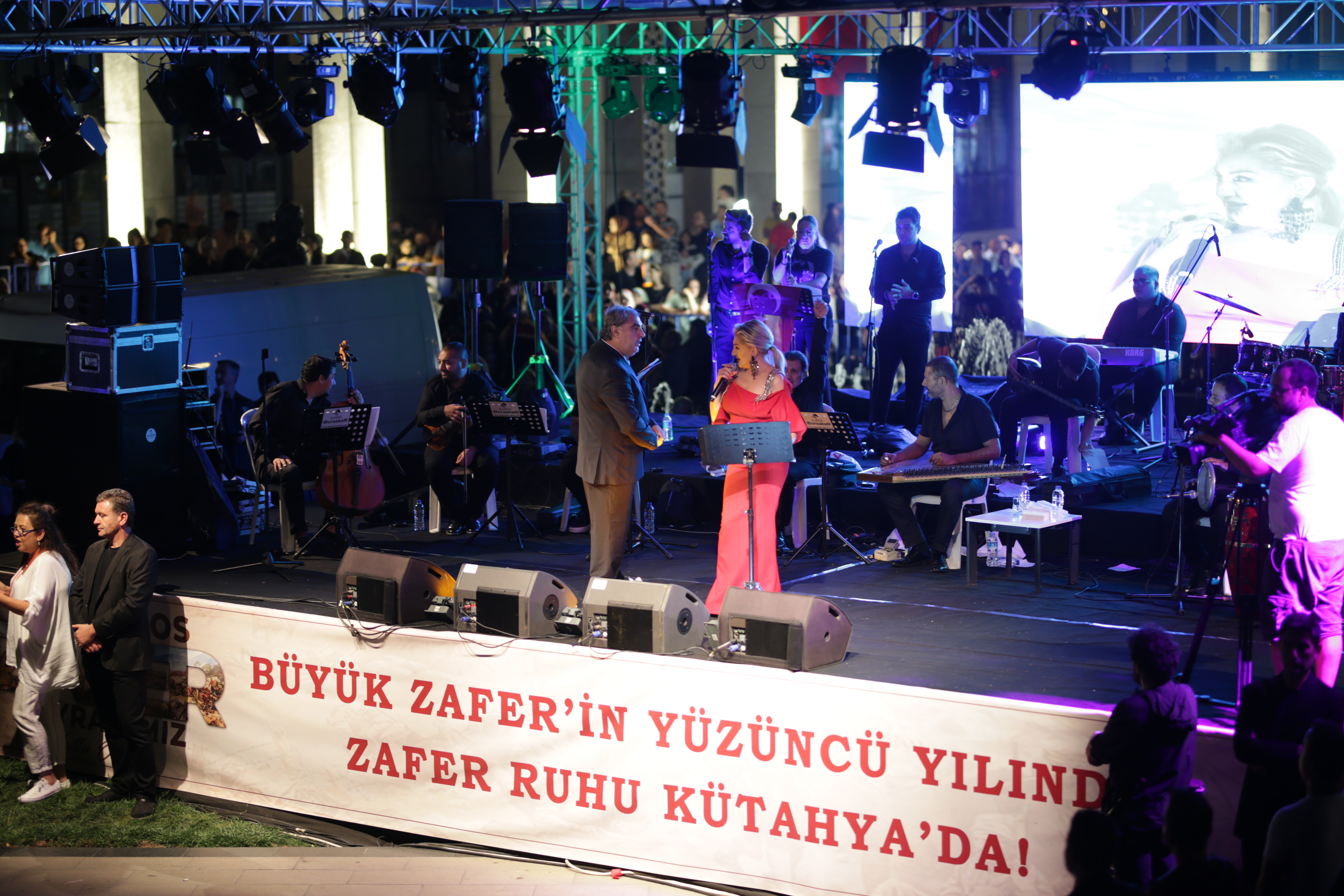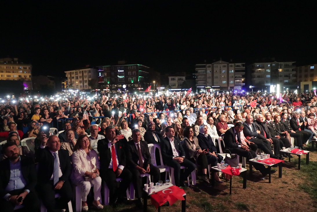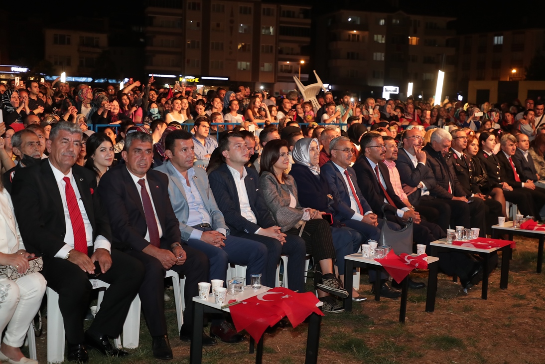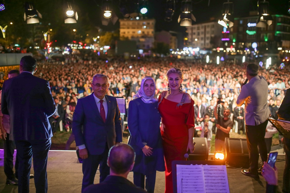 Konuşmaların ardından sahneye çıkan ünlü sanatçı Muazzez Ersoy, sevilen eserlerini kendisini dinlemeye gelen binlerce Kütahyalılarla birlikte söyledi.