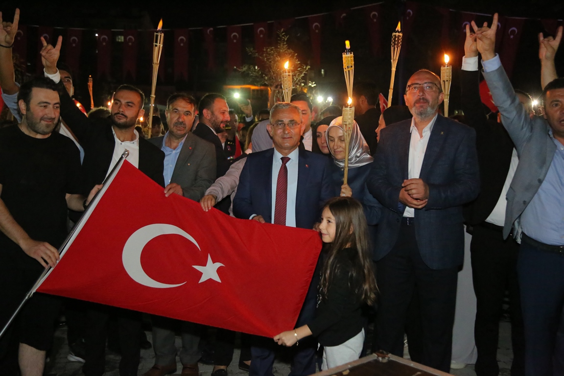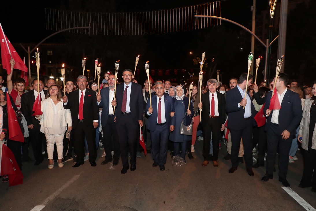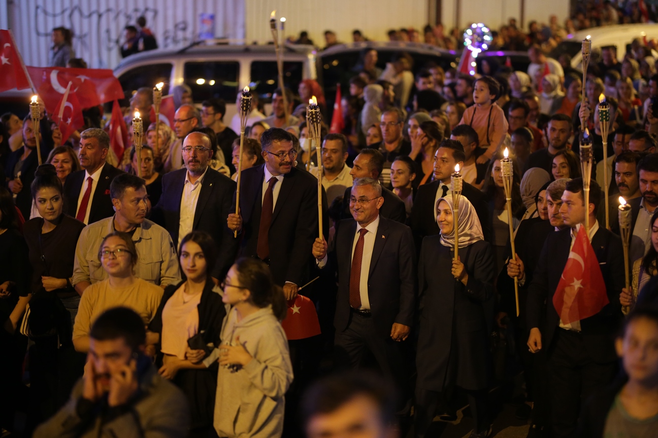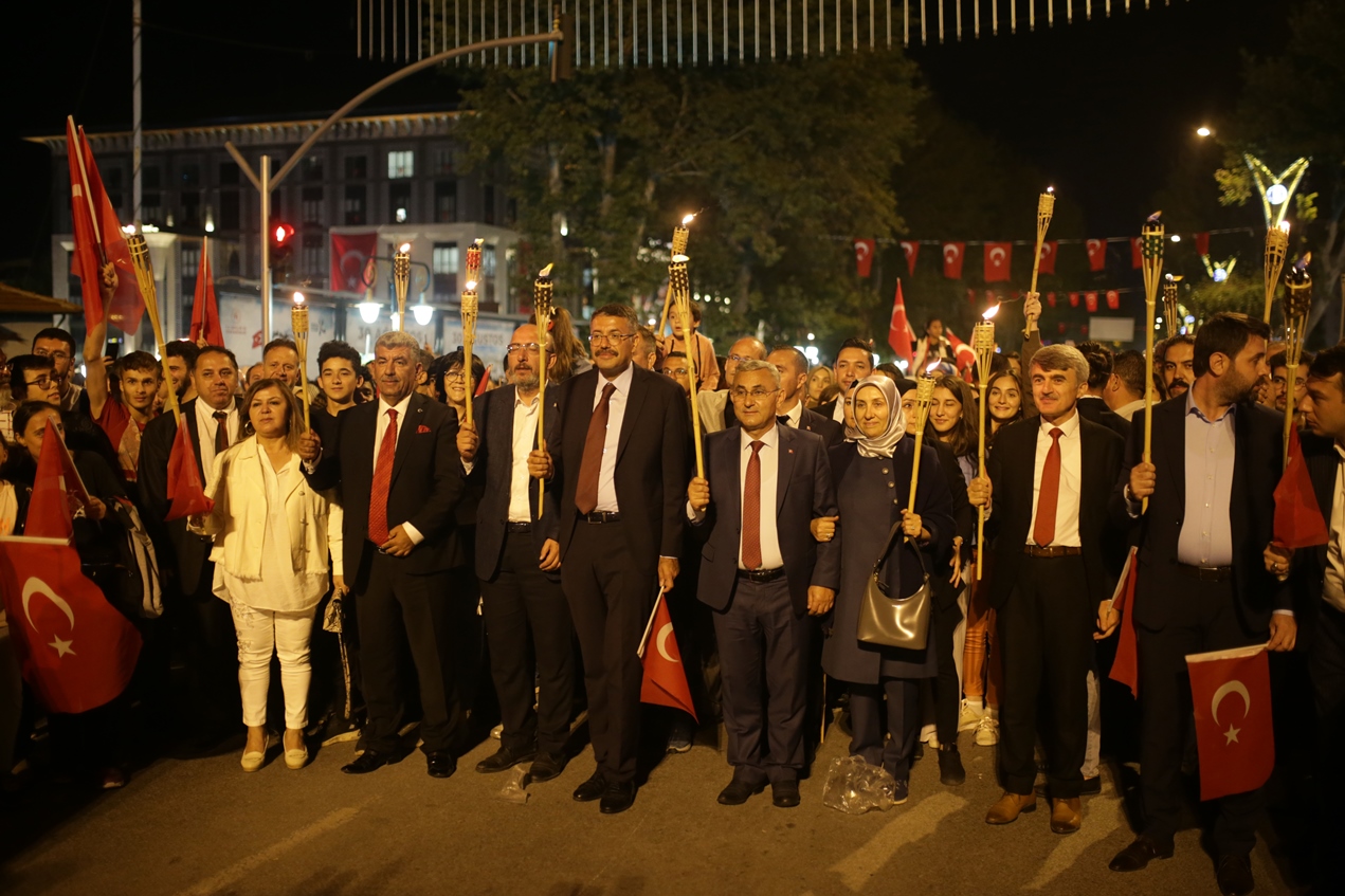 Ellerinde meşaleler ile yürüyen hemşehrilerimiz, söyledikleri marşlarla Zafer Bayramı’nın doyasıya coşkusunu yaşadılar.