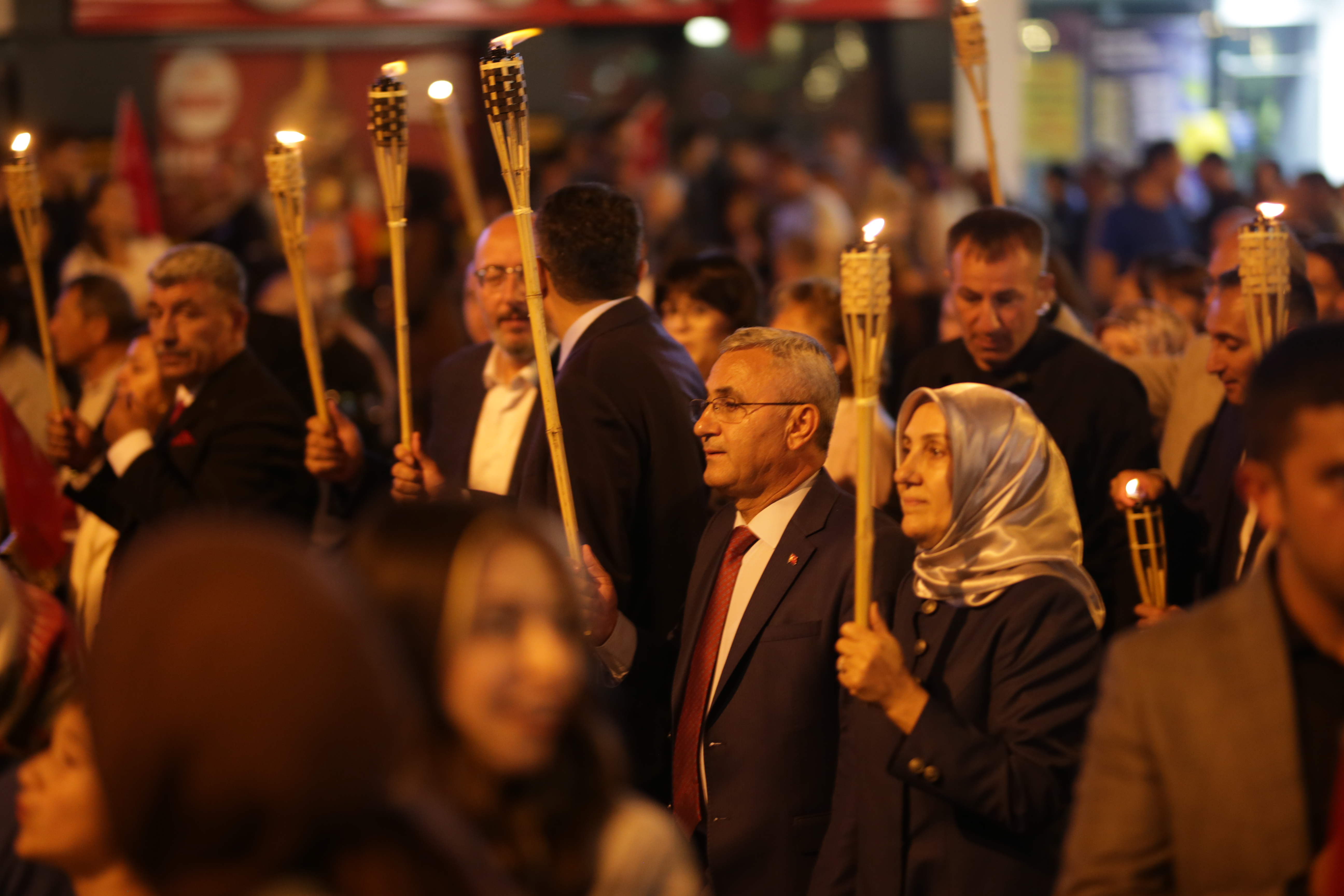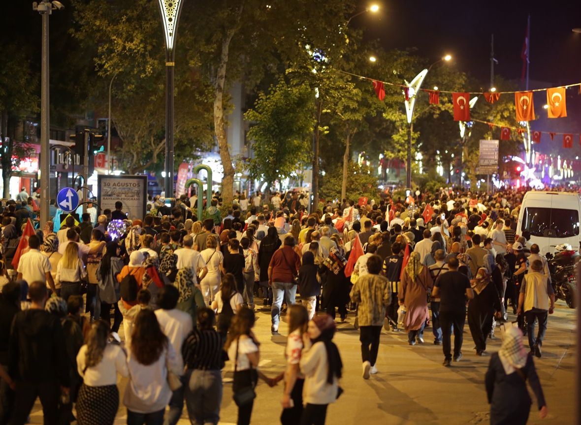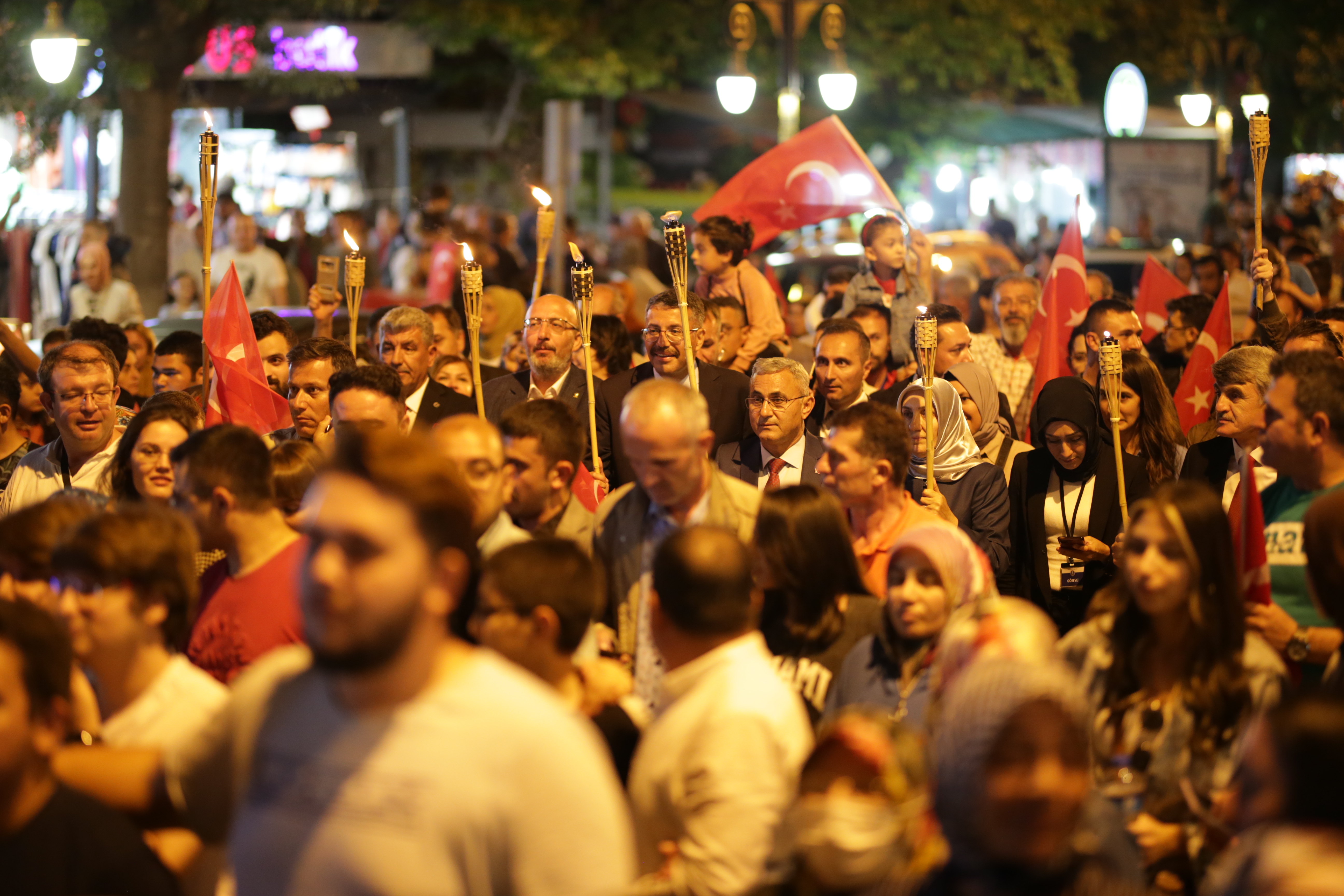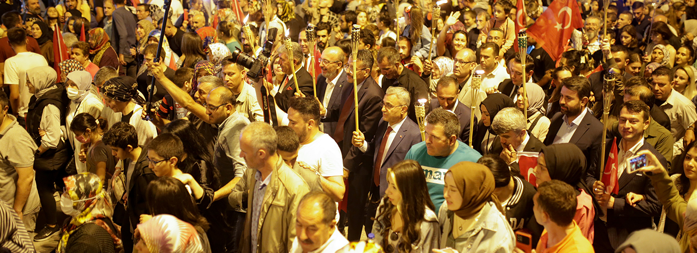 Ellerinde meşaleler ile yürüyen hemşehrilerimiz, söyledikleri marşlarla Zafer Bayramı’nın doyasıya coşkusunu yaşadılar.